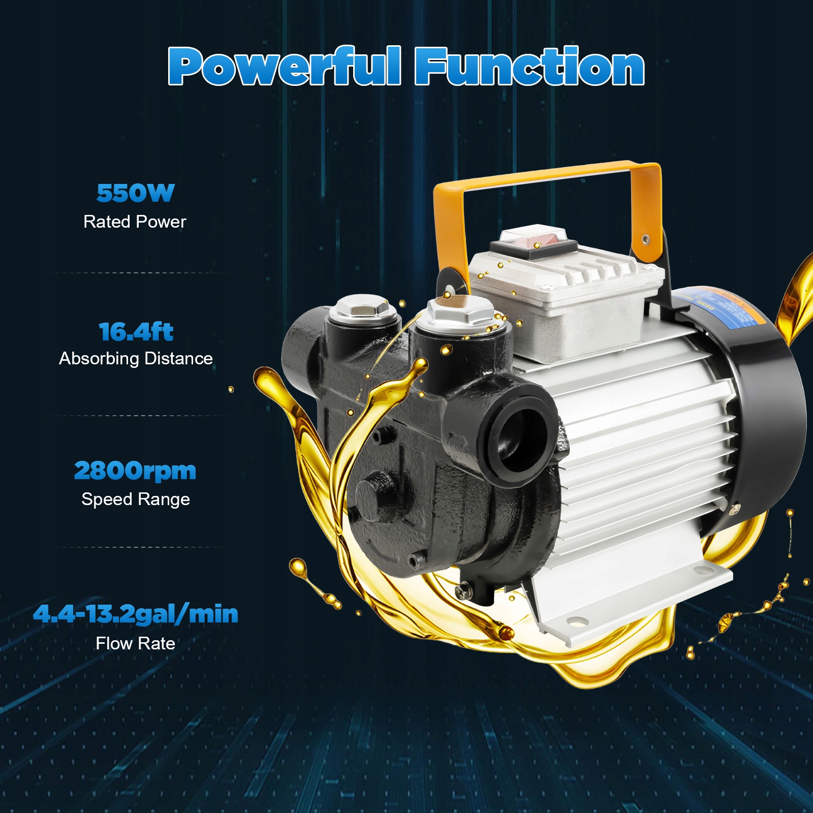 - Мощная функция: Высокая мощность (550 Вт) и высокая скорость (2800 об/мин) обеспечивают расстояние поглощения 16,4 фута и скорость потока 4,4–13,2 галлонов в минуту, что обеспечивает эффективную работу.