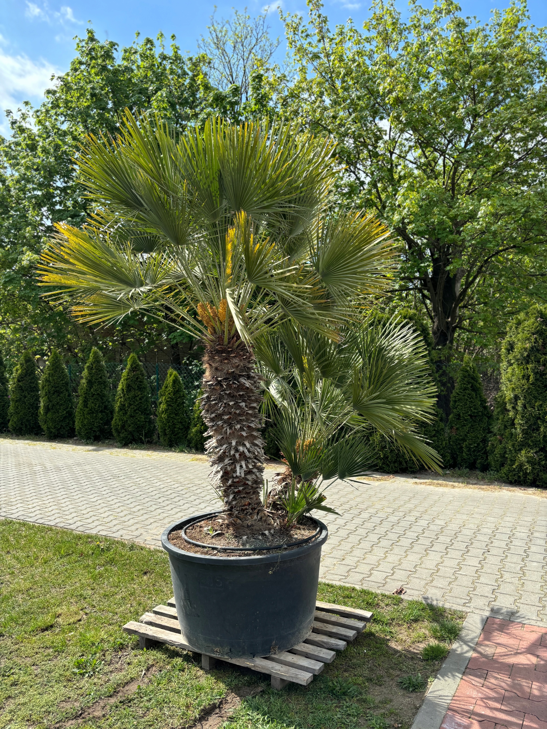 Chamaerops Humilis — единственная пальма, которая растет спонтанно в Европе. Это многоочаговая пальма, имеющая более одного ствола или главного стебля. Он среднего размера, очень декоративен и долговечен. Его красивые веерообразные листья прочные и жесткие. Его можно выращивать во всех регионах с умеренным климатом. Морозостойкость -12 С.