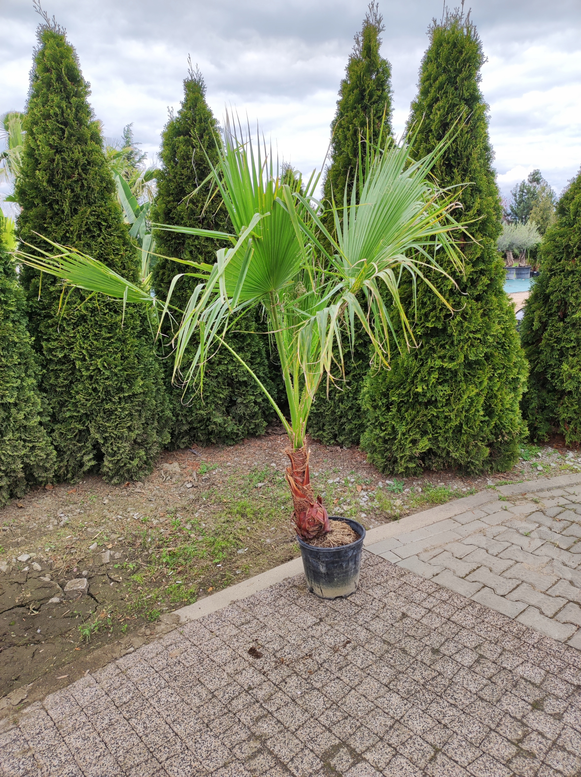 Вашингтонская робуста ПАЛМ происходит из засушливых районов Мексики. Вашингтонию робуста называют мексиканской. В природе стволы покрыты сухими опавшими листьями, которые создают вокруг ствола многослойную юбку. Эти широко культивируемые пальмы могут хорошо расти на многих почвах и в разных климатических условиях. Это одни из самых быстрорастущих пальм в нашем климате. Его морозостойкость составляет -6 градусов. Мексиканская пальма предпочитает более засушливую среду, потому что она происходит из засушливых пустынных мест обитания. Обильно поливайте, давая почве высохнуть между поливами.