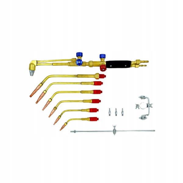 Горелка PU-216A/X16 — кислородно-ацетиленовая горелка с системой смешивания. инжектор (ниппель) предназначен для ручной сварки толстой стали до 12 мм и кислородная резка стали толщиной 3 ÷ 100 мм. Эта горелка выделяется с компактной конструкцией и малым весом. Сварочные приспособления оснащены розетками, в то время как режущая насадка имеет пазовые сопла и кислородный клапан для резки ручка.