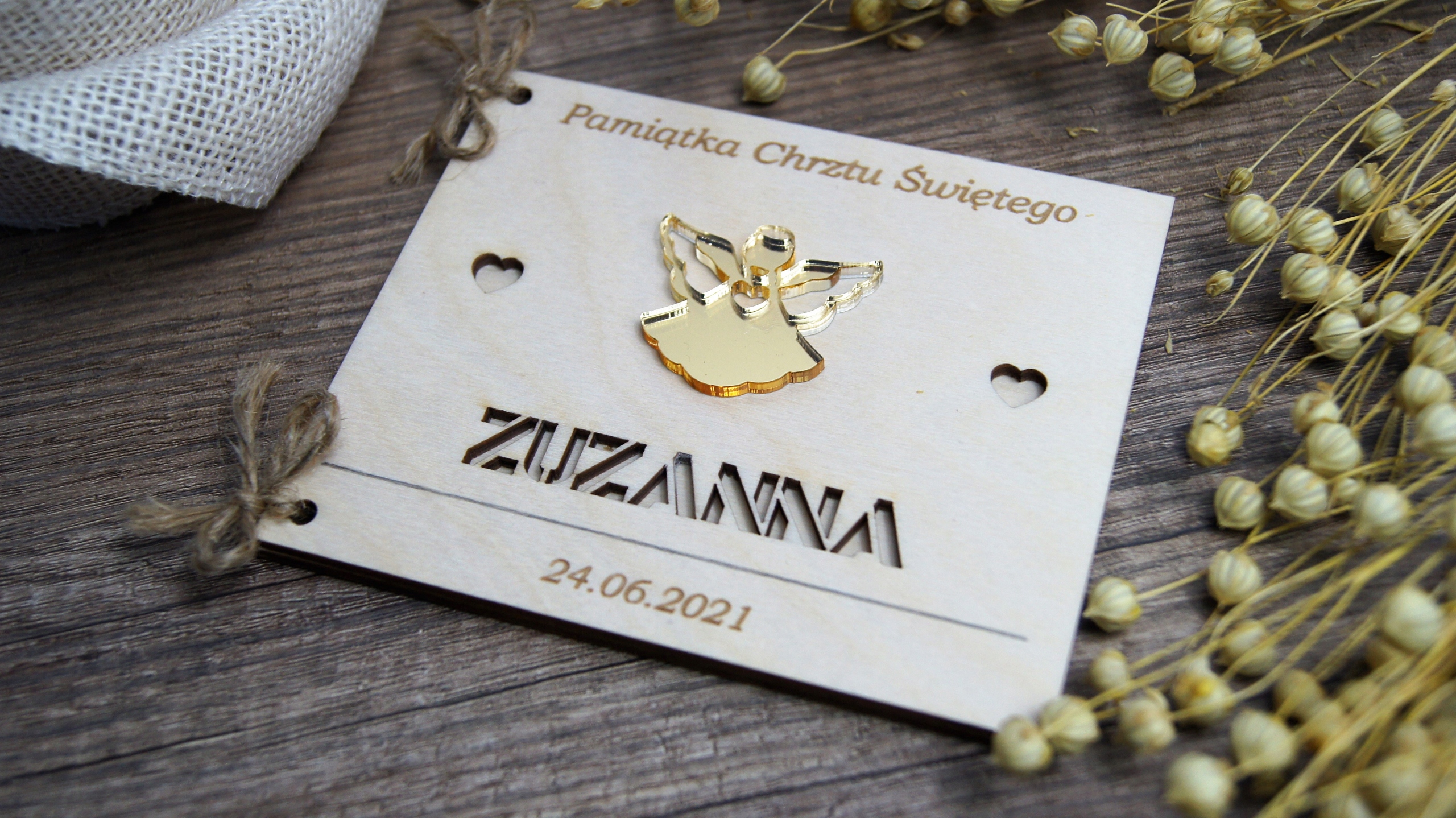 Pamiątka Chrzest Święty drewniana złoty dekor 3D
