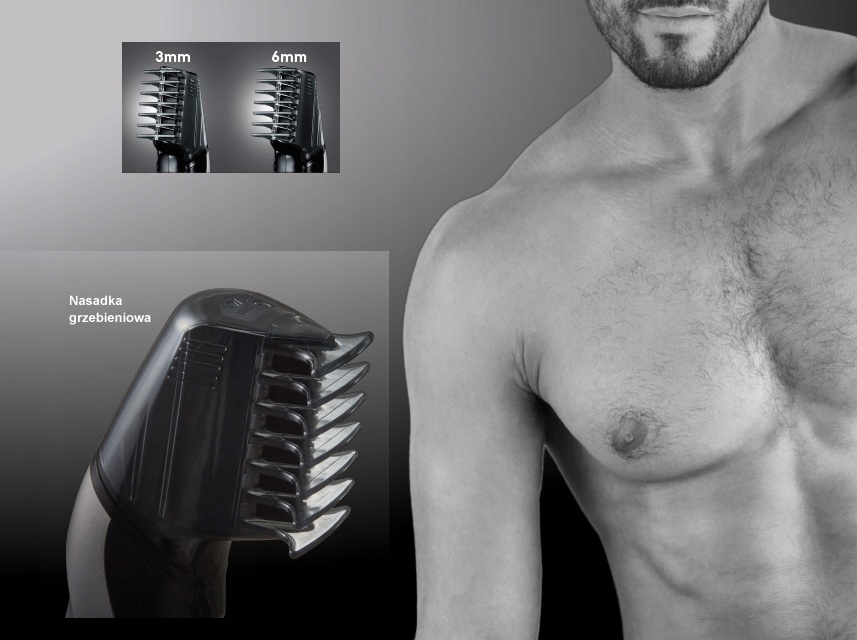 волосы на ногах и груди можно разрезать до выбранной длины. Прикрепления с двумя настройками (3 мм, 6 мм) прикреплены