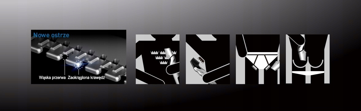 эффективно хватает волосы, предотвращая раздражение кожи. Твердый (нижний) лезвие защищает кожу, предотвращая движение (верх), чтобы касаться кожи и повредить ее. Более того, это прост в использовании и режут близко к коже. Деликатные края твердого лезвия широки и округлены, чтобы как можно меньше раздражать кожу. Перерывы в постоянном лезвии узкие, чтобы затруднить туда добраться