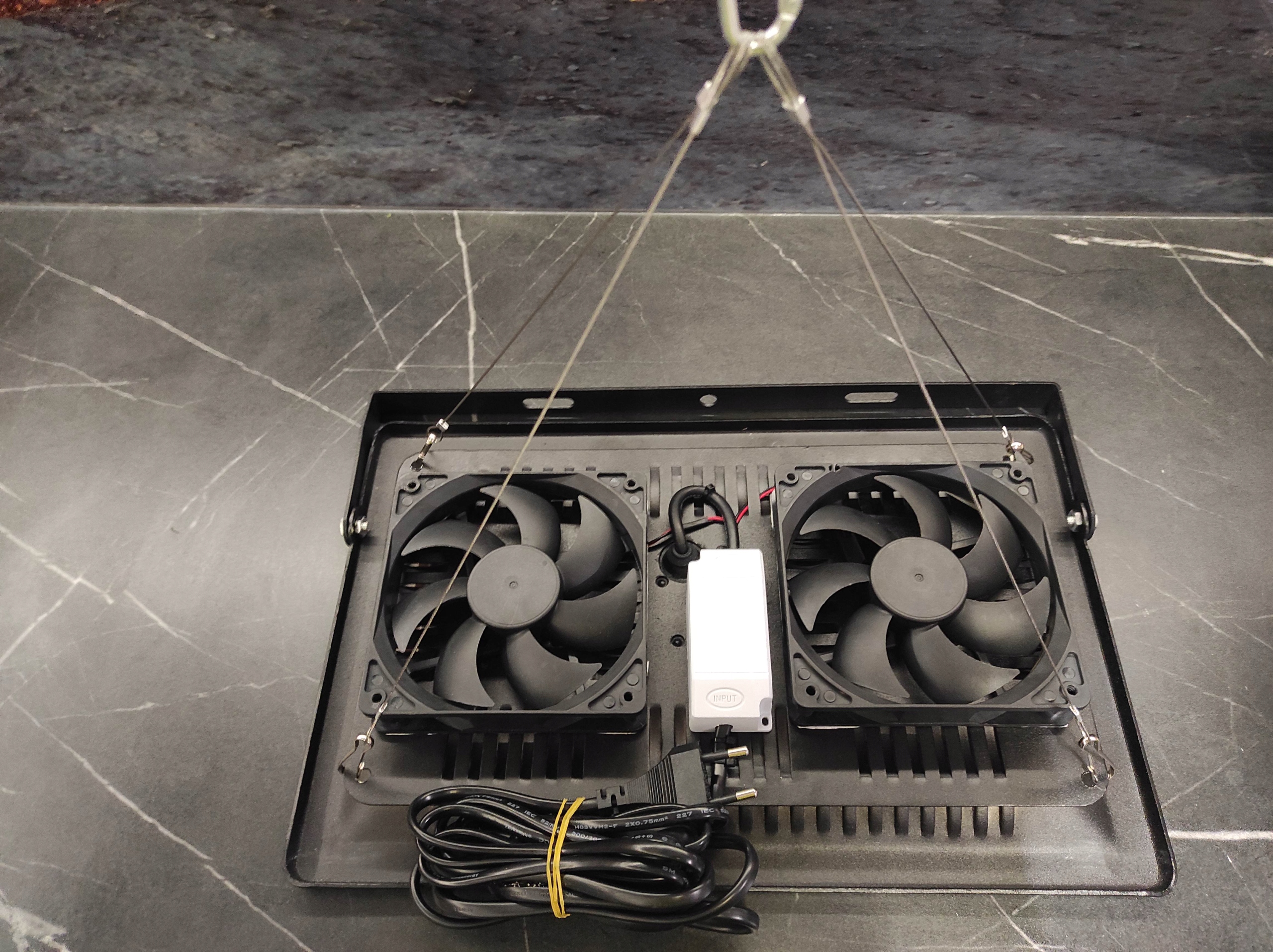 Благодаря специальному блоку питания 12 В, подсоединенному к радиатору, вентилятор работает включается одним кабелем вместе со светодиодом GROW.