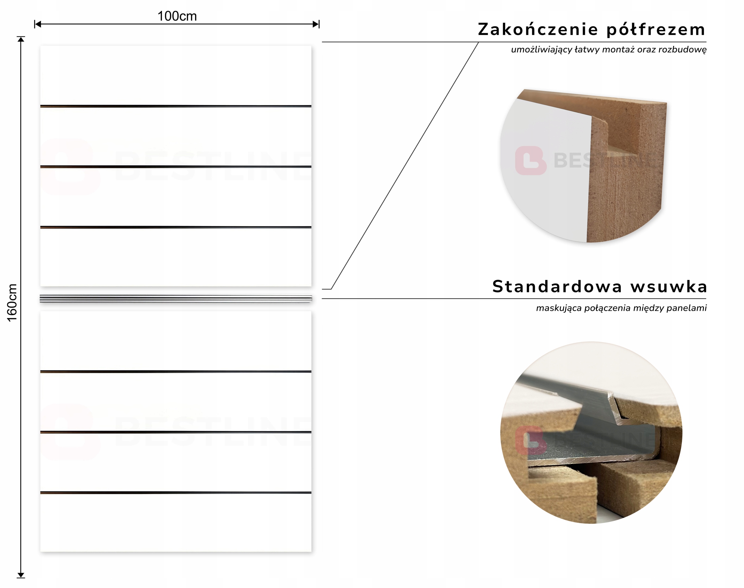 Благодаря использованию полурезака в каждой панели Slatwall мы можем свободно «укладывать» панели друг на друга. Соединить две, три или даже четыре панели можно для получения единой реечной стены любой высоты.