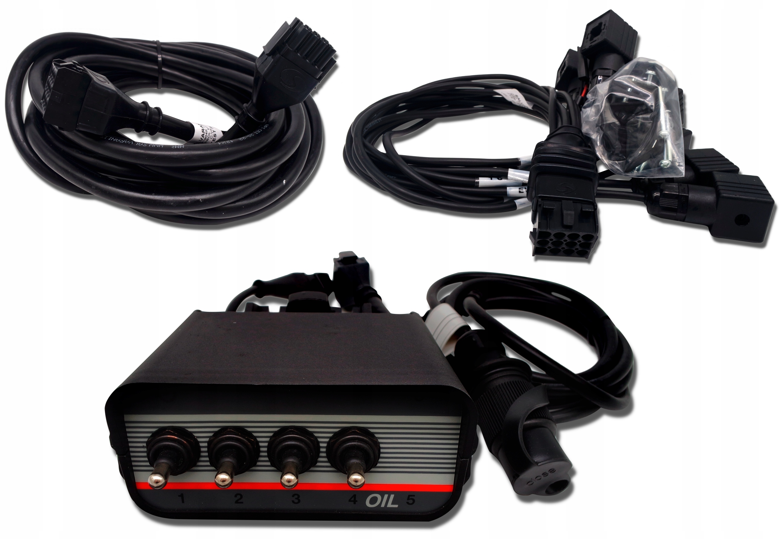 В комплект входит комплект электрических кабелей, необходимых для питания панельи соединяем ее с гидрораспределителем. Дополнительно в комплекте есть трос, удлиняющий соединение на 7 метров. На других наших аукционах вы найдете другие аксессуары, соответствующие комплекту.
