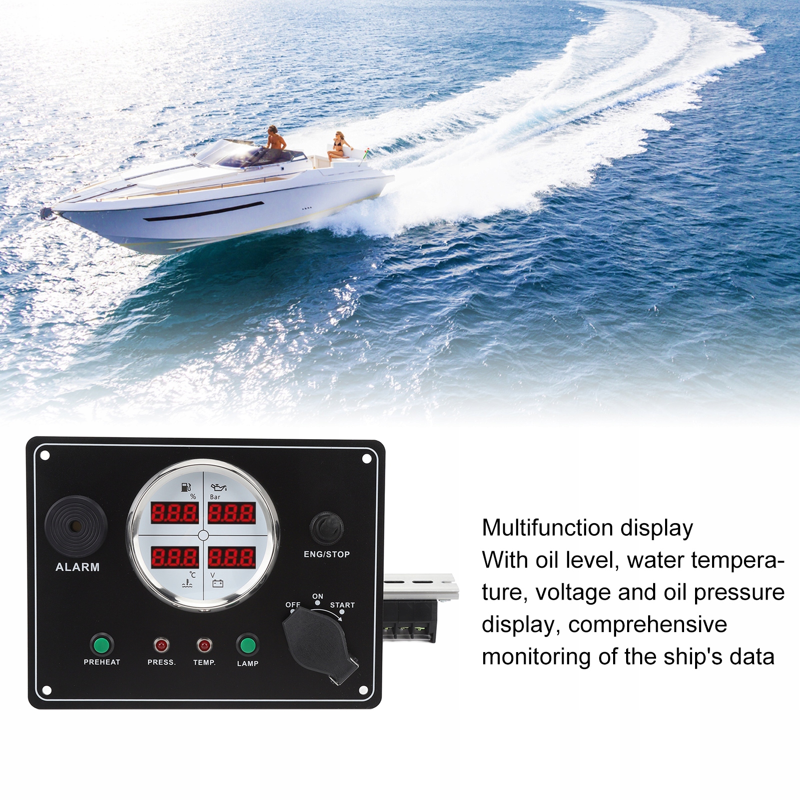 1. МНОГОФУНКЦИОНАЛЬНОЕ ИСПОЛЬЗОВАНИЕ: Контролируйте уровень масла, температуру воды, напряжение и давление масла с помощью этой многофункциональной приборной панели 4-в-1. Обеспечьте бесперебойную работу вашего судна.