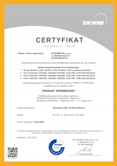 Панели сбоев Безопасность Сталмика производится в Польше опытными сварщиками, которые работают в соответствии со строгие определенные процедуры и стандарты качества. Их навыки подтверждаются Tüv сертификатами, которые гарантируют самую высокую точность.