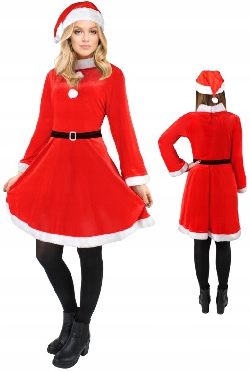 The Mrs. Костюм Клауса от MALATEC® – это сочетание элегантности, комфорта и рождественского очарования. Состоит из расклешенного красного платья с белым мехом, приталенного пояса и шапки с помпоном - комплект, который за несколько секунд превратит вас в очаровательную Снежинку или помощницу Санты.