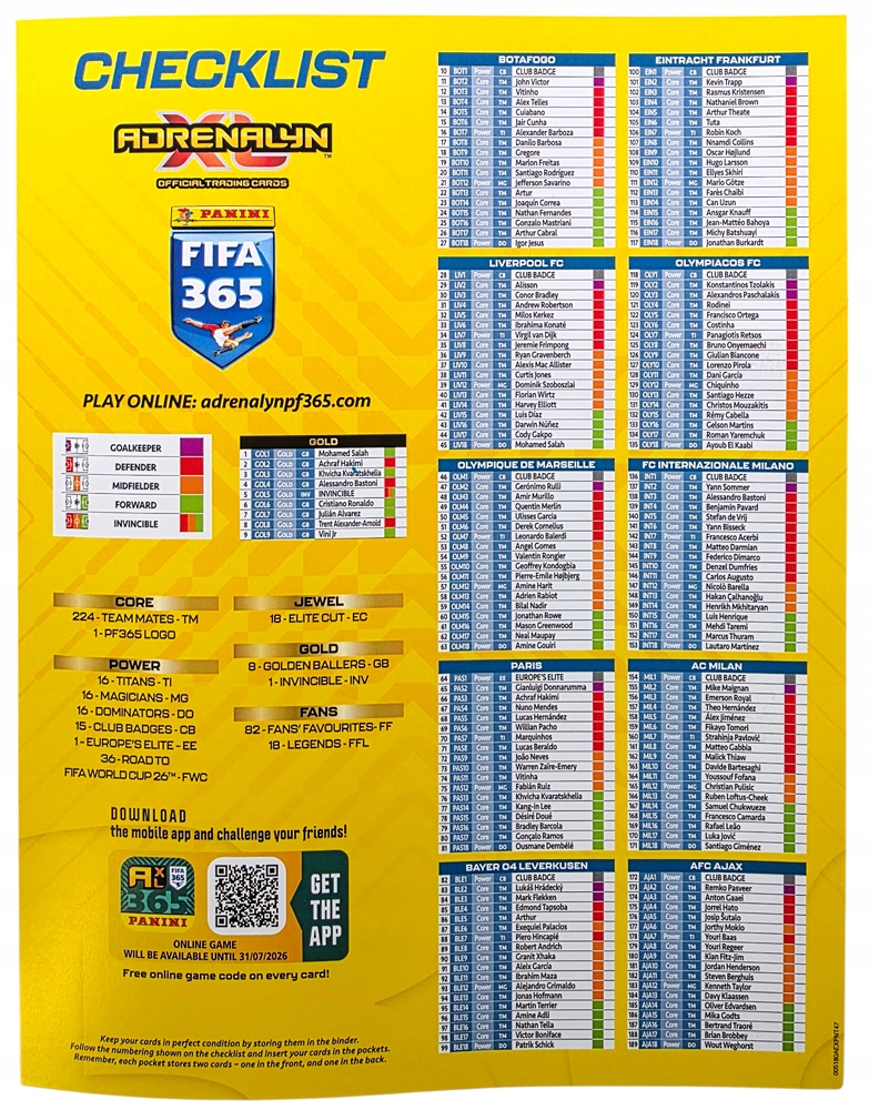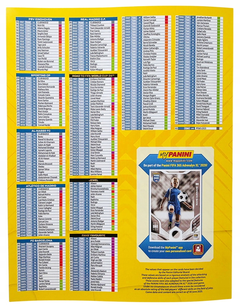 Официальная коллекция Panini FIFA ® 365 ADRENALYN XL™ 2026 World Top Clubs Teams & Players