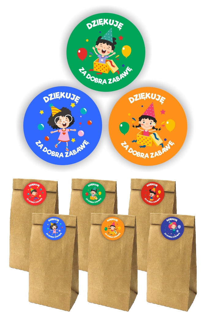 Набор маленьких бумажных пакетиков для сладостей, украшенных наклейками с надписью:"Спасибо за приятно проведенное время" >.