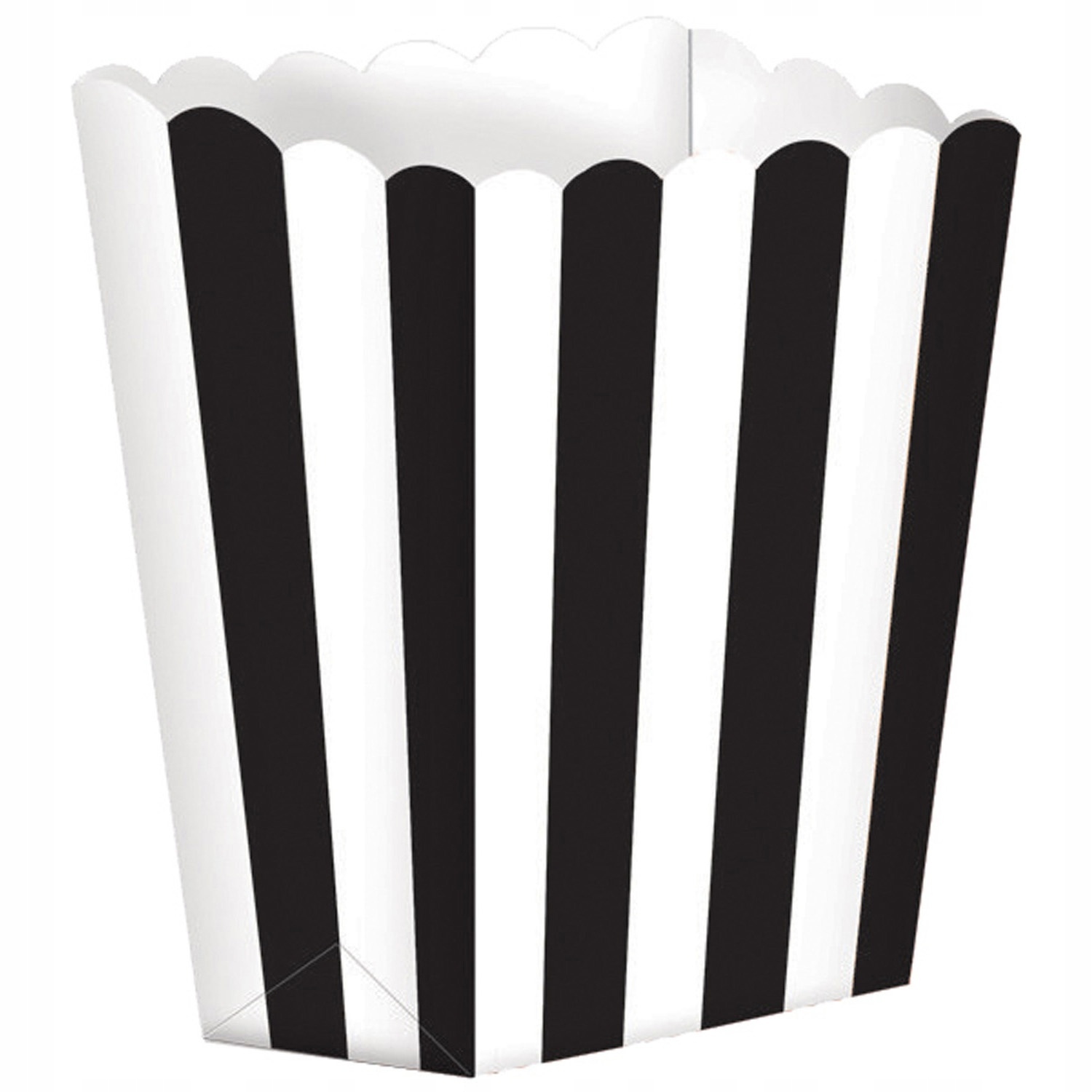 коробки в белом - черные вертикальные полосы, идеальные в качестве украшения шведского стола на вечеринках не только для детей. Контейнеры из картон. Отличный фильм и кино в случаях. Они будут работать на дни рождения, дни имени, Хэллоуин или голливудскую вечеринку. Отлично подходит для жареной кукурузы, зефира пены, желе, конфет или любых других сладостей. - 9,5 см