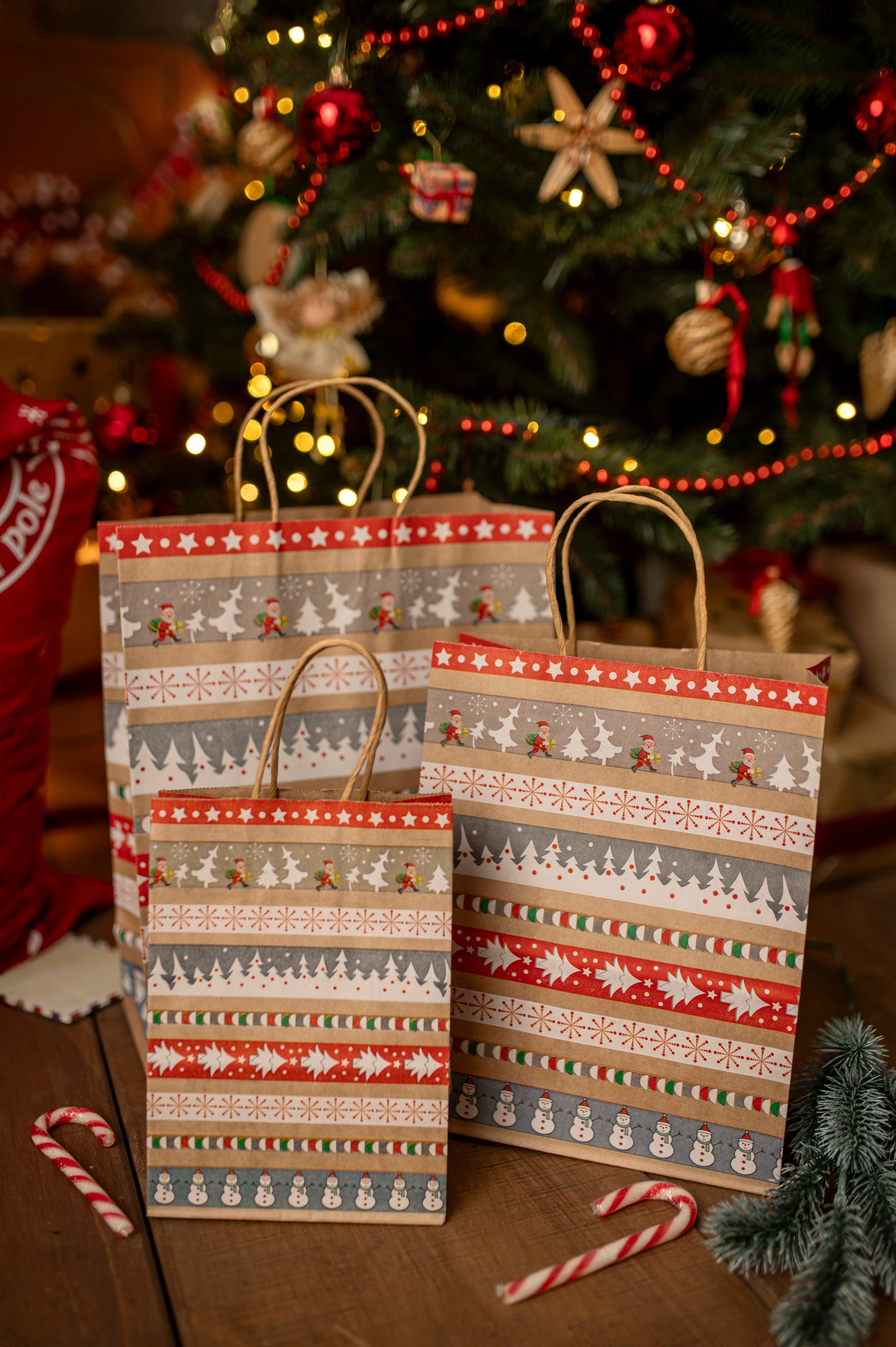 ❄️Высококачественная бумага, прочные ручки и красочные принты делают каждый пакет красивым и элегантным - готовы к положите его под елку!