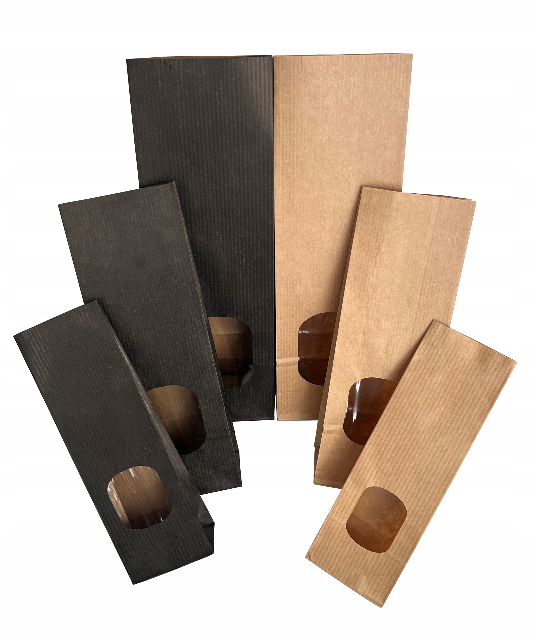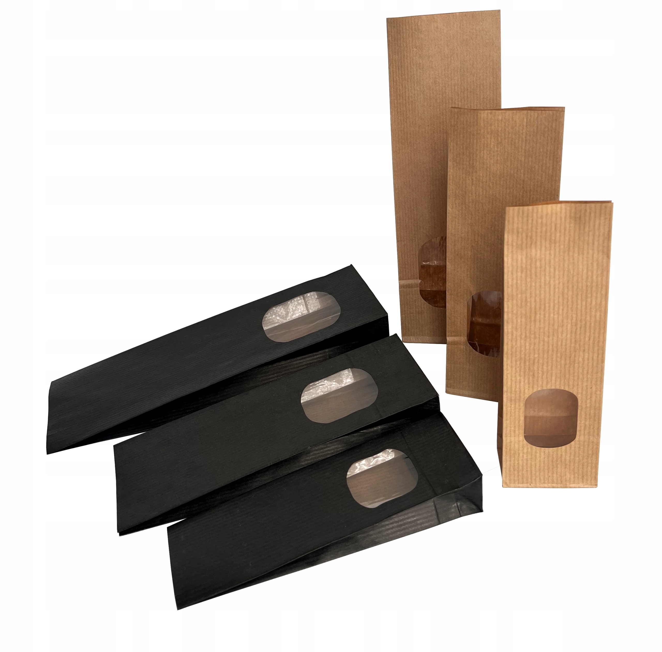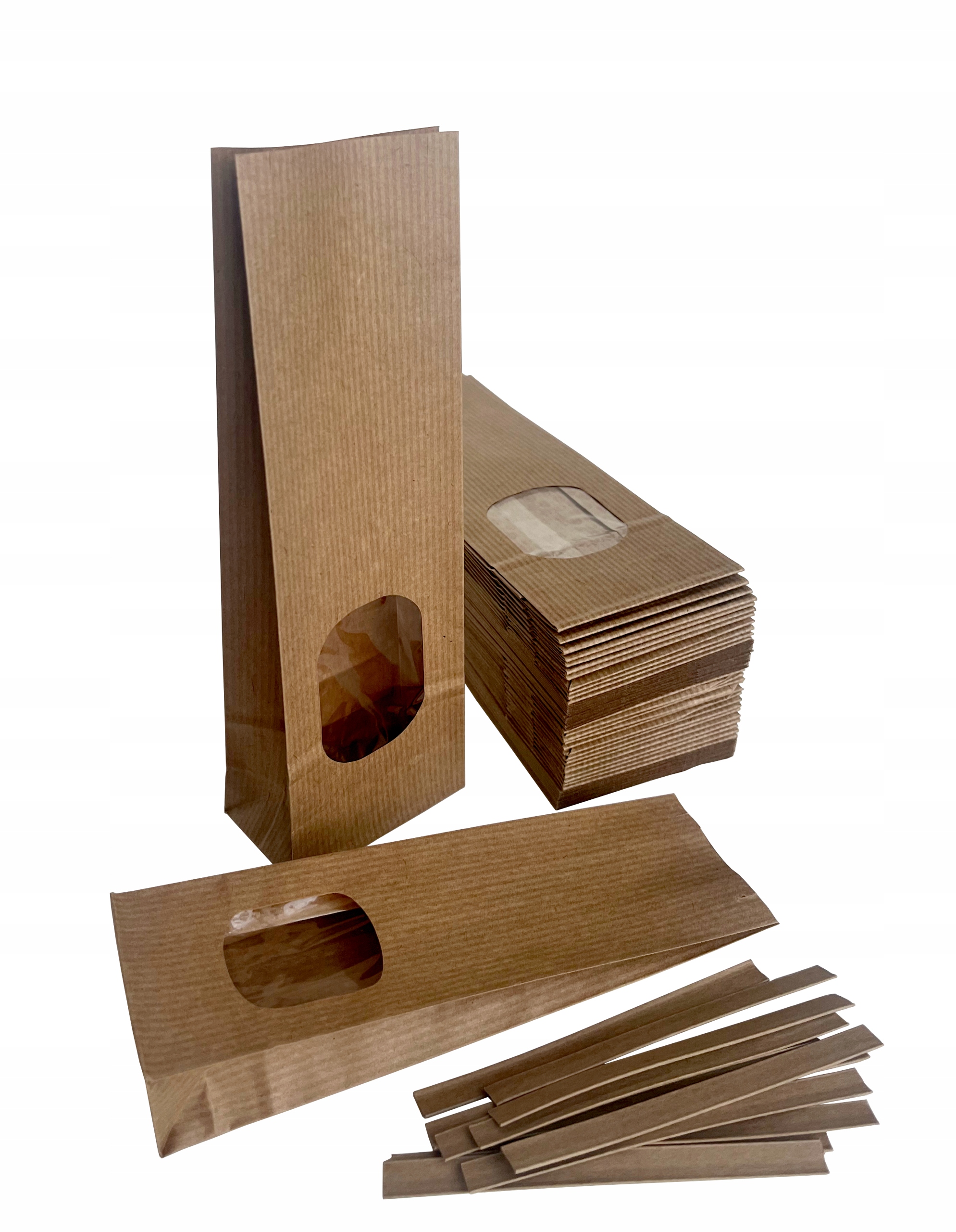 Сумки из крафт-бумаги с окошком 7х4х20,5 см - 50 шт + клипсы 10 см - 50 шт.