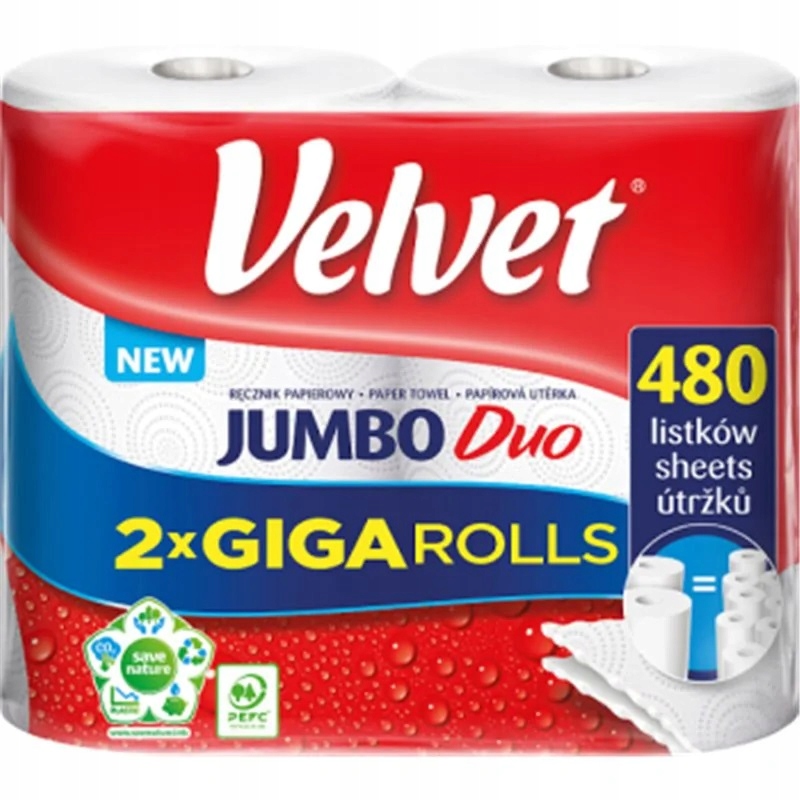 Разделен на 480 листов. Устойчив к разрыву. Практичный, белый цвет. Привлекательное тиснение. Экономия места. Сырье из возобновляемых лесных ресурсов. Целлюлоза из контролируемых источников. Сертификаты FSC и PEFC. В нашей интернет-аптеке вы можете заказать бумажное полотенце Velvet Jumbo Duo по привлекательной цене. Двойная упаковка характеризуется желаемой эффективностью. Один рулон бумажного полотенца Velvet занимает меньше места, поэтому вы всегда сможете иметь его под рукой. Вы будете использовать его, в частности, на кухне, при уборке дома или салона автомобиля. Одноразовые бумажные полотенца на 100% биоразлагаемы и не загрязняют окружающую среду. Бархатные бумажные полотенца сертифицированы FSC и PEFC для устойчивого лесопользования.