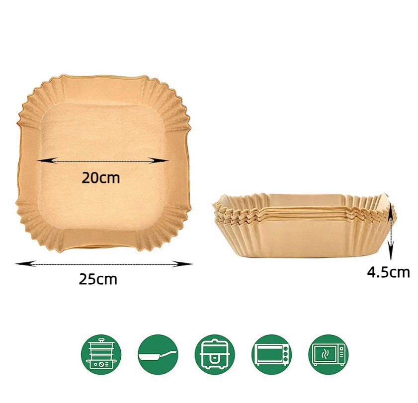 🥘 Бумага для выпечки фритюрницы термостойка до 220 градусов Цельсия, внутренняя подкладка толще, поэтому нет, она не трескается и не вытекает масло во время использования.