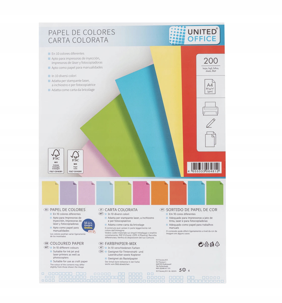 UNITED OFFICE Цветная бумага А4, 200 шт.