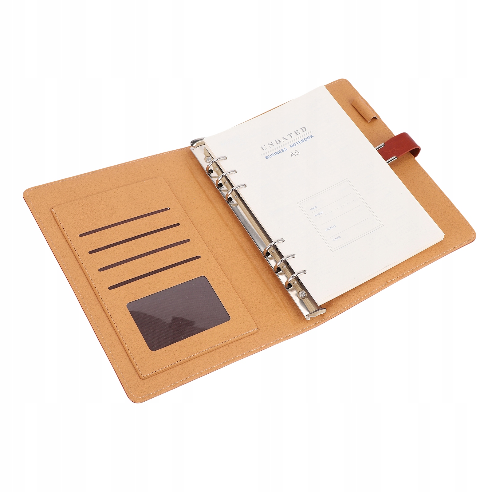 4. 6 колец для переплета. Папка имеет 6 колец для переплета из никелевой нержавеющей стали, внутренний диаметр 0,8 дюйма, вмещает около 100 листов сменной бумаги формата A5, позволяет гибко добавлять или удалять бумаги.