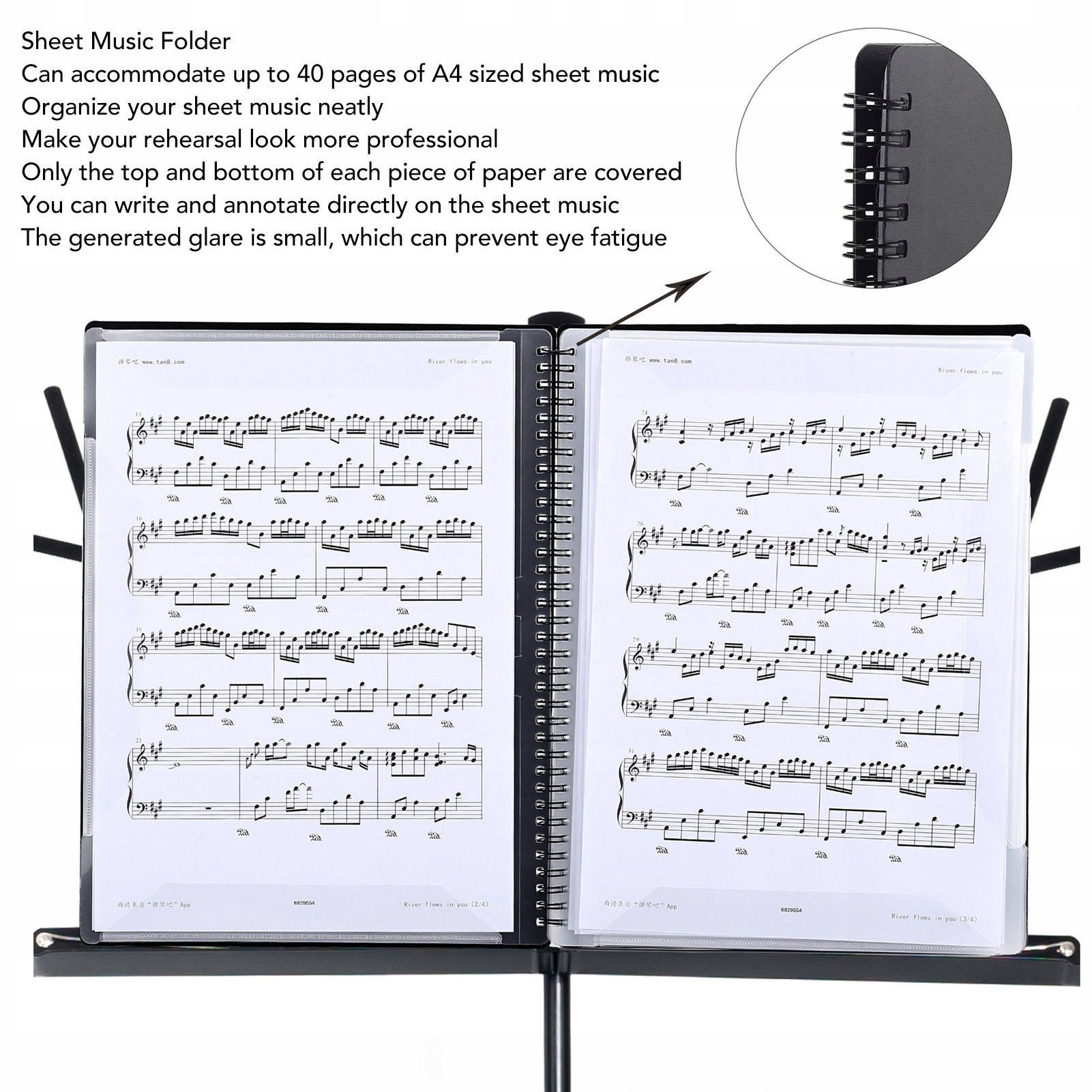 2. [Практичный дизайн] Закрыты только верх и низ каждого листа бумаги, вы можете писать и комментировать прямо на нотах. Генерируемые отражения малы, что предотвращает нагрузку на глаза.