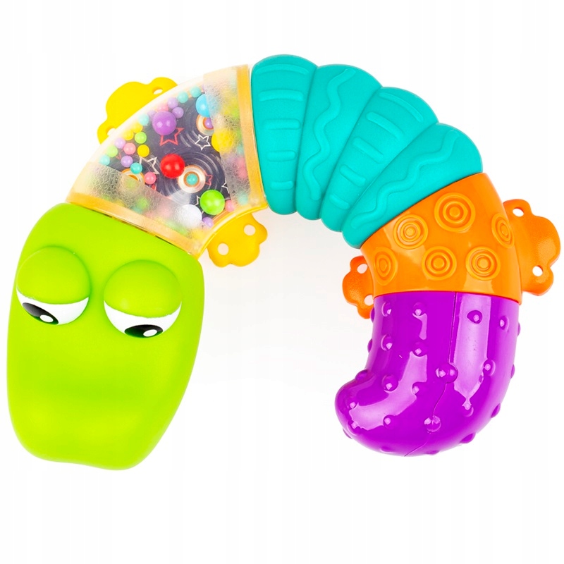 Складной крокодил – игрушка, внешний вид которой можно менять в зависимости от того, как соединены отдельные сегменты. У игрушки пищащая голова, гремящие бусины и вращающийся гремящий хвост. Отдельные части крокодила различаются по фактуре и цвету, что положительно влияет на развитие познавательных способностей ребенка. Игрушка будет стимулировать чувства ребенка, побуждая его сенсорно исследовать мир.