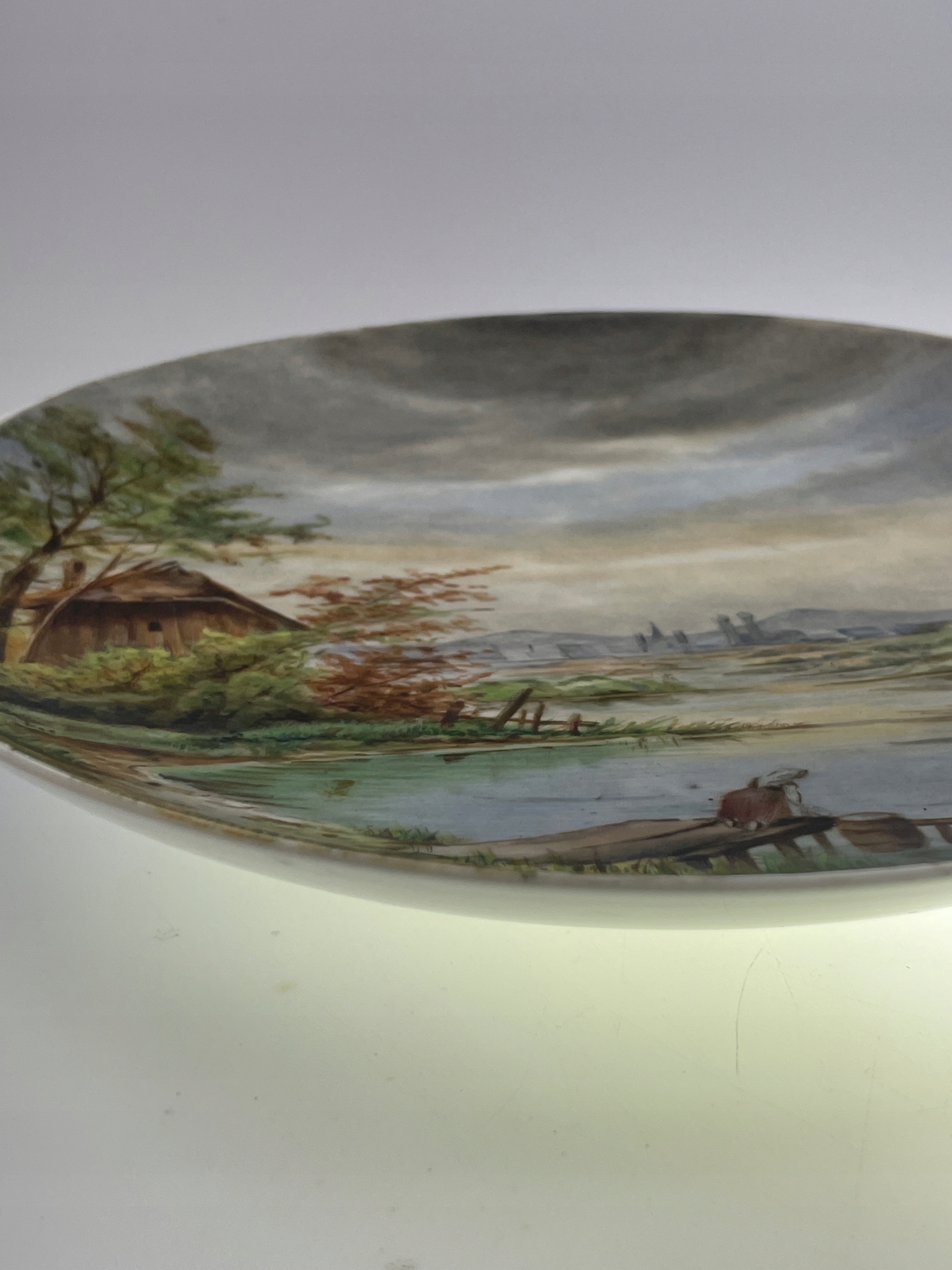 Пара красивих тарілок з ручним розписом гірських пейзажів