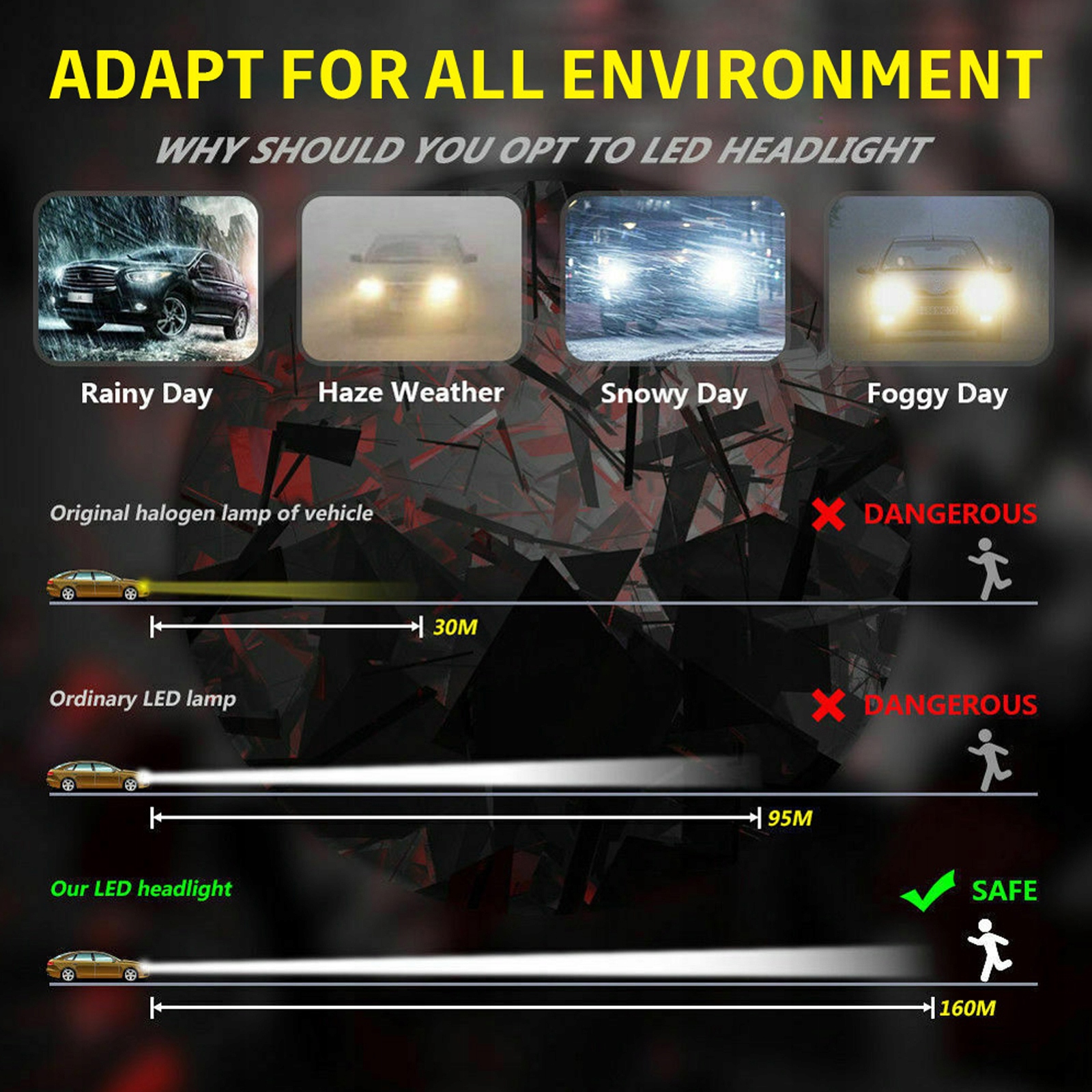 Пара светодиодных ламп для автомобильных фар H7 80Вт, комплект 6000К, белый дальний/ближний свет