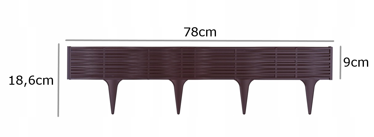 Продается в удобных коробочках. В упаковке 5 элементов по 78 см каждый, всего 3 м 90 см. Элементы палисада можно соединить последовательно благодаря специальным крючкам. Изделие из пластика.
