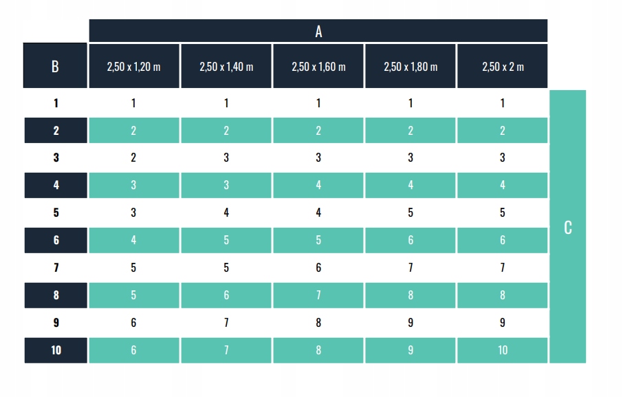 2. Сложите количество панелей одинаковых размеров.