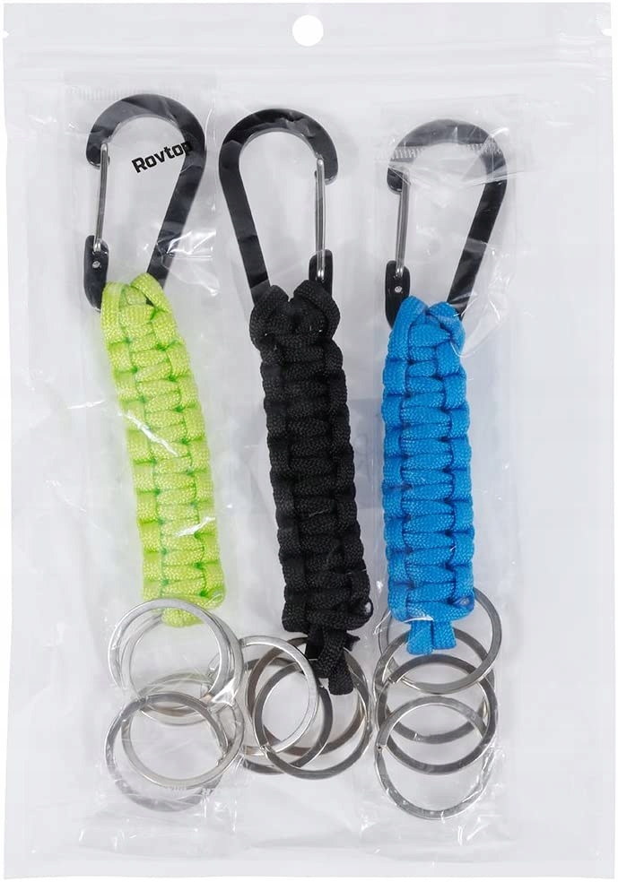 - Паракорд – многофункциональность на кончиках пальцев: Изготовленное из прочного паракорда кольцо для ключей можно разматывать в экстренных ситуациях, выполняя роль спасательной веревки, что делает его идеальным инструментом как в полевых условиях, так и в повседневной жизни.