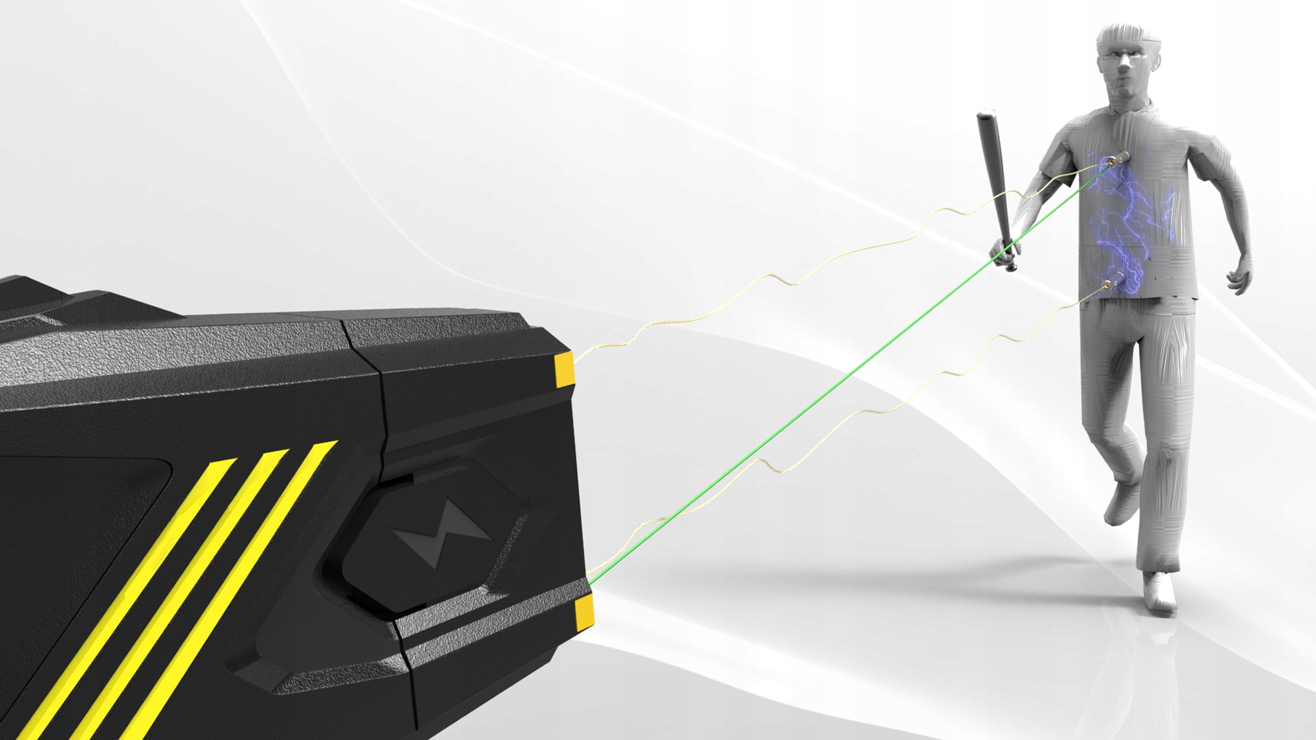 Электрошокер сразу выстрелит в нападающего 2 электродами, которые эффективно его шокируют и выводят из строя - достаточно одного точного выстрела и каждый нападающий упадет на землю, как бревно.