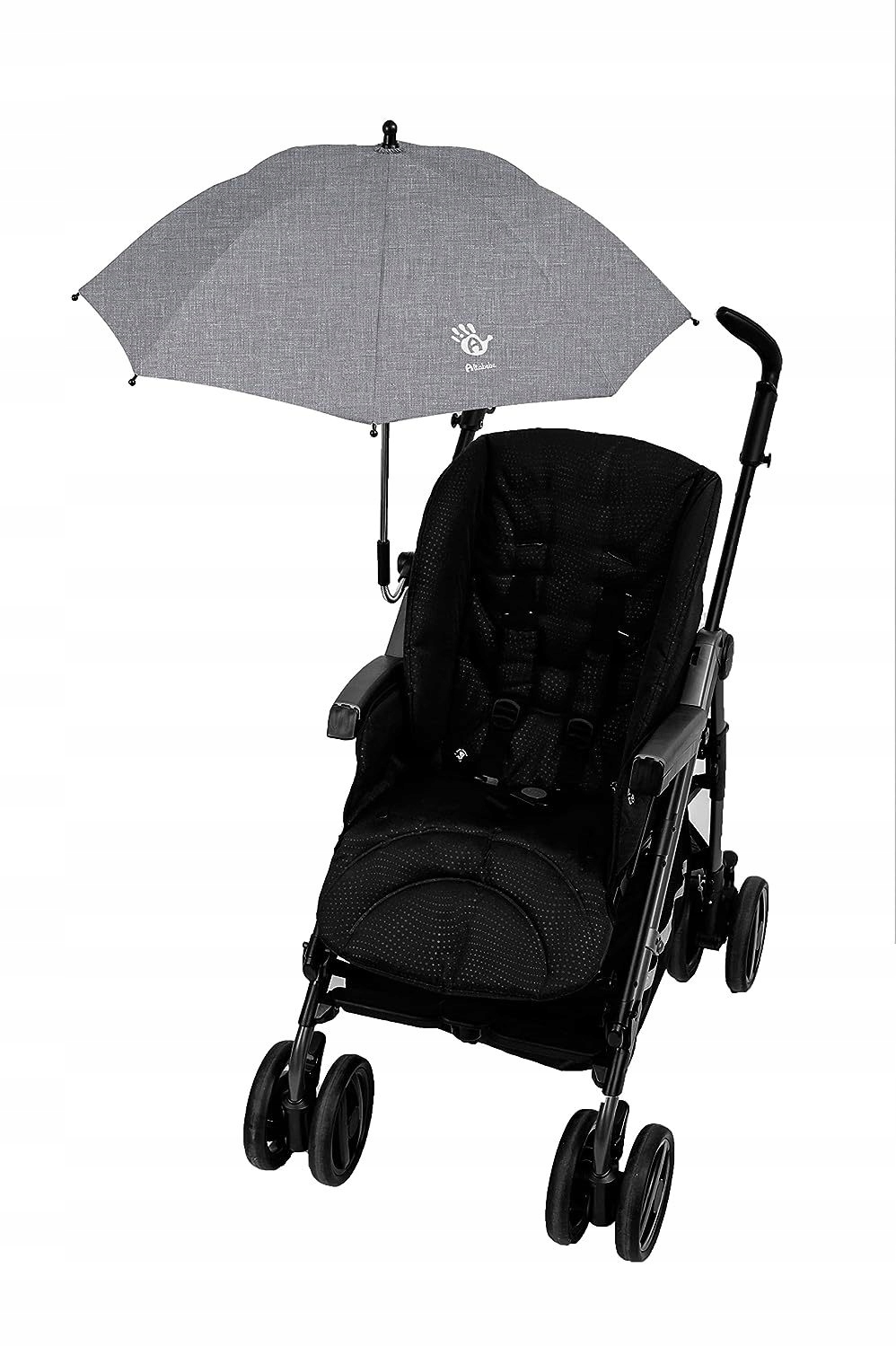 В комплект входит специальный держатель — переходник, позволяющий закрепить зонт в конкретной коляске.