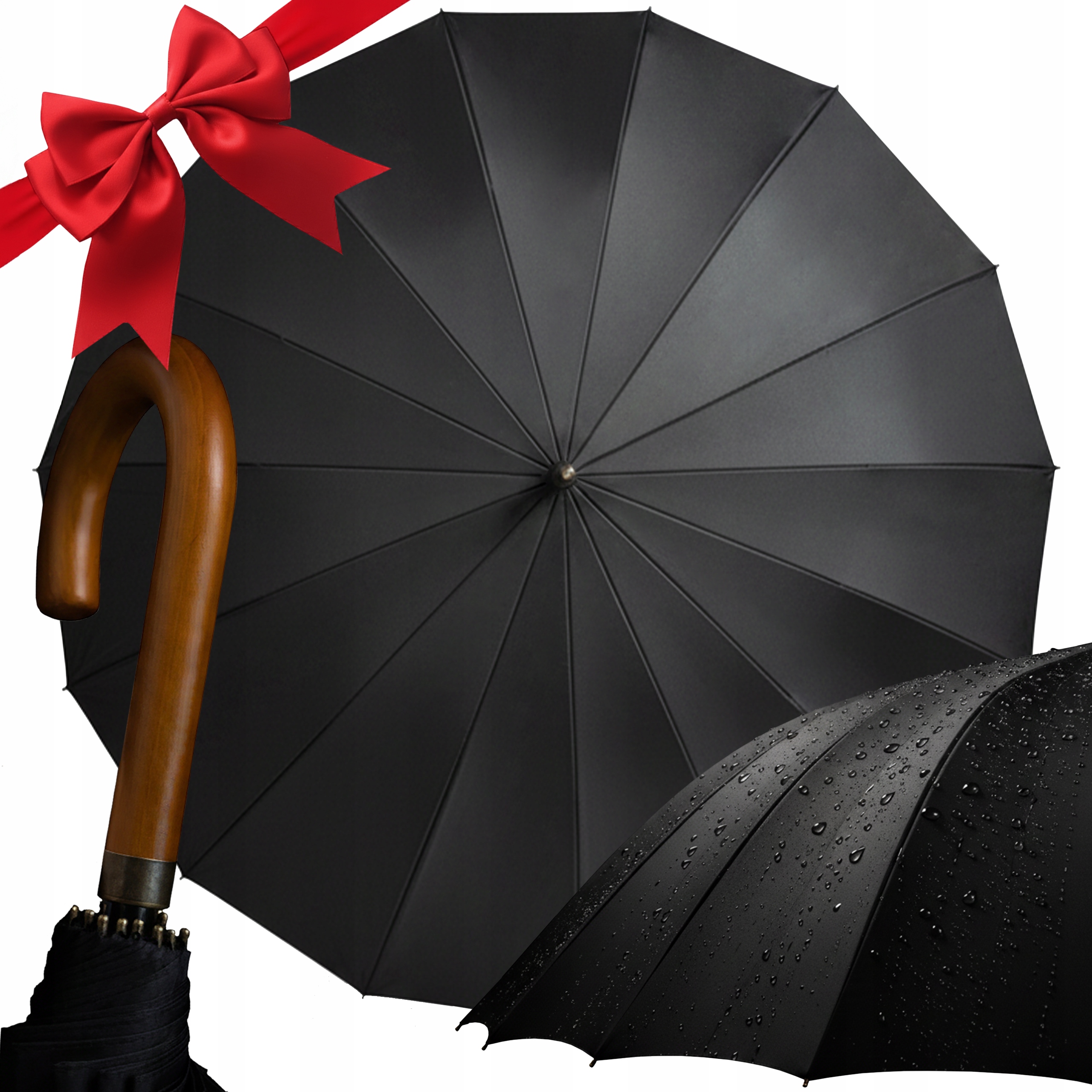 АВТОМАТИЧЕСКИЙ ЗОНТ МУЖСКОЙ ЖЕНСКИЙ 16 ПРОВОДОВ С ДЕРЕВЯННОЙ РУЧКОЙ, ЗАЩИЩАЮЩИЙСЯ от дождя