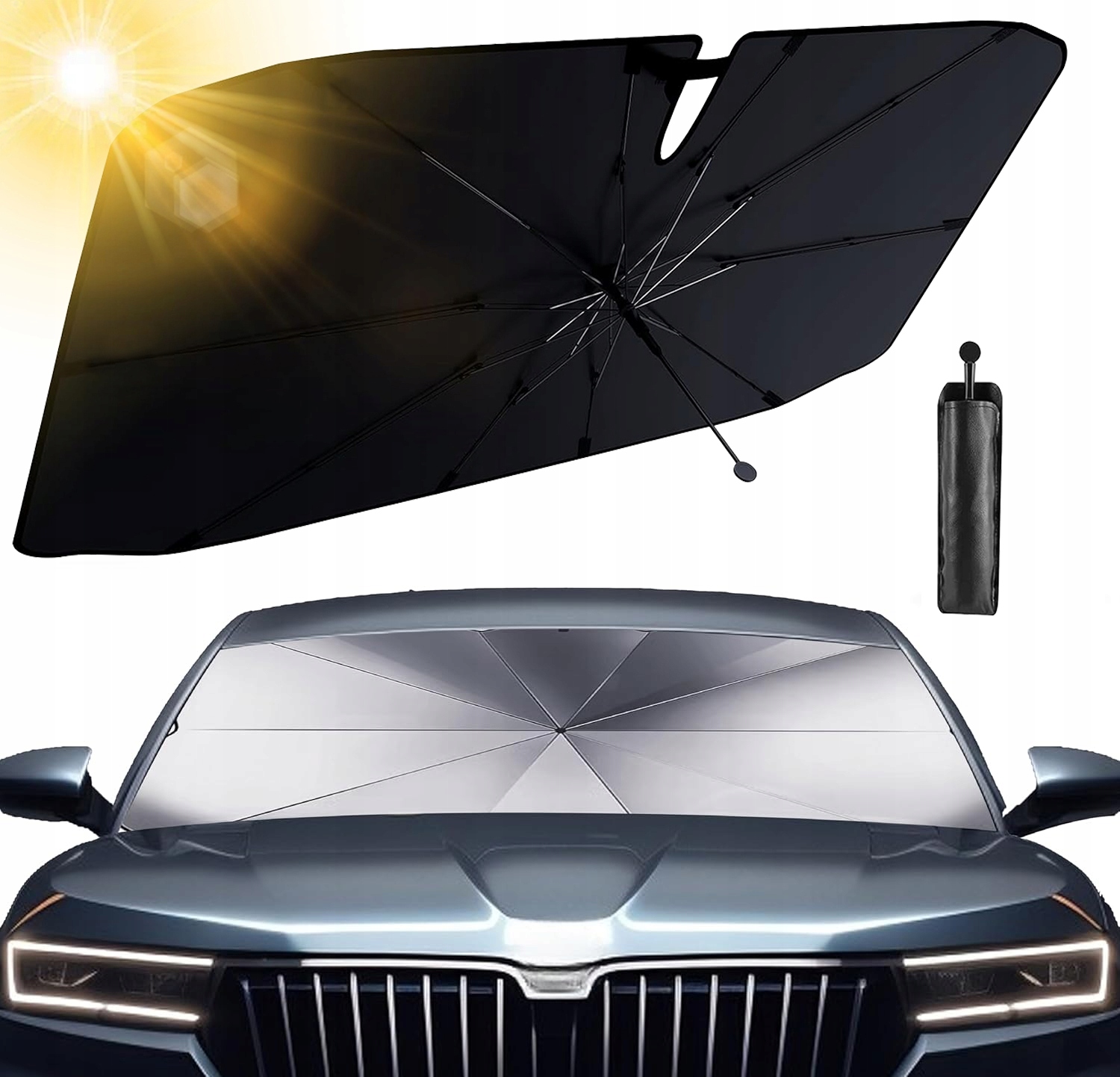 ✅ 【Практичный складной дизайн】Наш автомобильный солнцезащитный козырек козырек легко складывается и открывается в машине. В хранении его длина составляет всего около 35 см. Благодаря прилагаемой кожаной и водонепроницаемой сумке для хранения (с петлей для подвешивания) его легко хранить и он всегда под рукой.