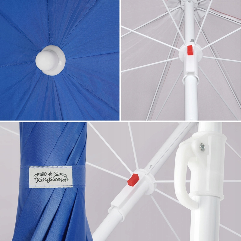 Функция наклона позволяет индивидуально регулировать зонт в зависимости от положения солнца. Благодаря наземному шипу зонт можно закрепить на песке или использовать подставку для зонта (не входит в комплект). Навес зонта изготовлен из водонепроницаемого материала с защитой от солнца UV50+, защищающего от солнца или небольшого летнего дождя. Опоры мачты и зонта изготовлены из стали с порошковым покрытием. Используя крепежный ремень, вы можете легко завязать зонт перед упаковкой и транспортировать его в прилагаемой сумке для переноски. Благодаря практичной сумке и небольшому весу (чуть более 1 кг) зонт идеально подходит для вашего следующего визита на пляж или следующего пикника.