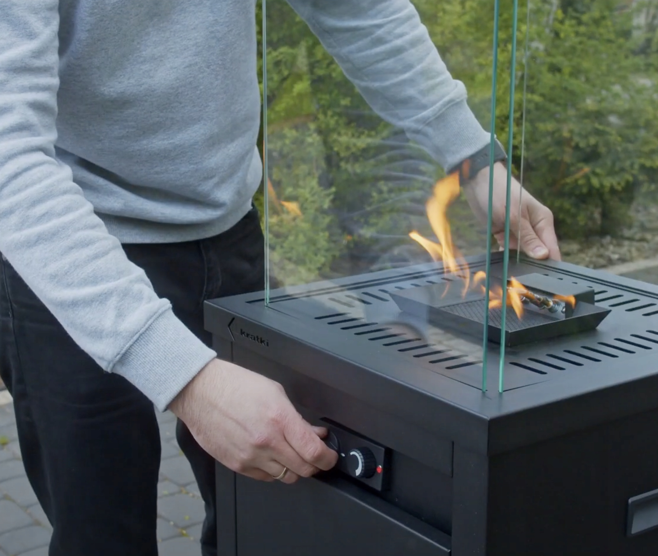 Регулировка пламени - просто поверните регулятор справа в любую сторону и оставьте удобную вам высоту пламени.
