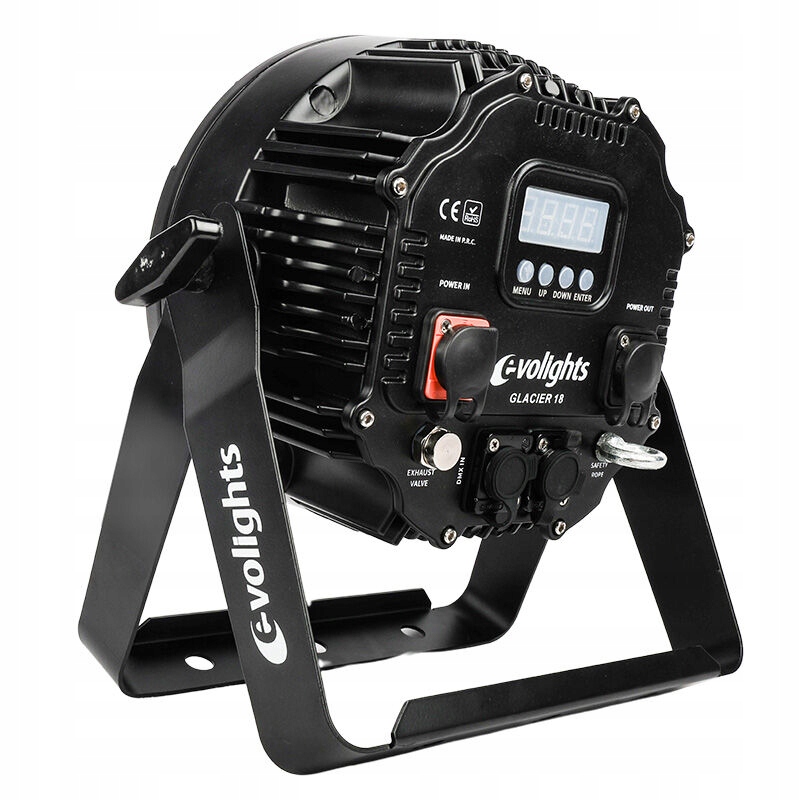evolights Glacier 18 ma Чрезвычайно широкий каталог применений и идеально подходит для многих мест , таких как , свадебные залы, театральные или открытые концертные сцена. Отражатель также может быть использован для оформления света , создавая впечатляющее акцентное освещение . Его Compact Dimensions и Light Construction делают это легко транспортировать и собирать . Благодаря различным режимам эксплуатации (Car, Sound, Master/Slave, DMX) , устройство может быть легко адаптировано к их Light Show , так что даже люди без технического опыта будут справляться со своей работой . Панель управления со светодиодным дисплеем и четырьмя кнопками облегчает начальную и быструю регулировку настроек устройства .