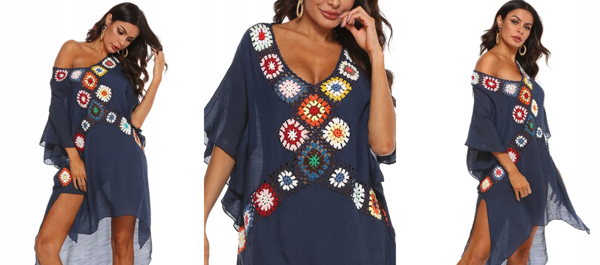ПАРЕО ЛІТНЯ ПЛЯЖНА ТУНІКА БОХО ВИШИВКА ТЕМНО-СИНЯ ЛІТНЯ СУКНЯ