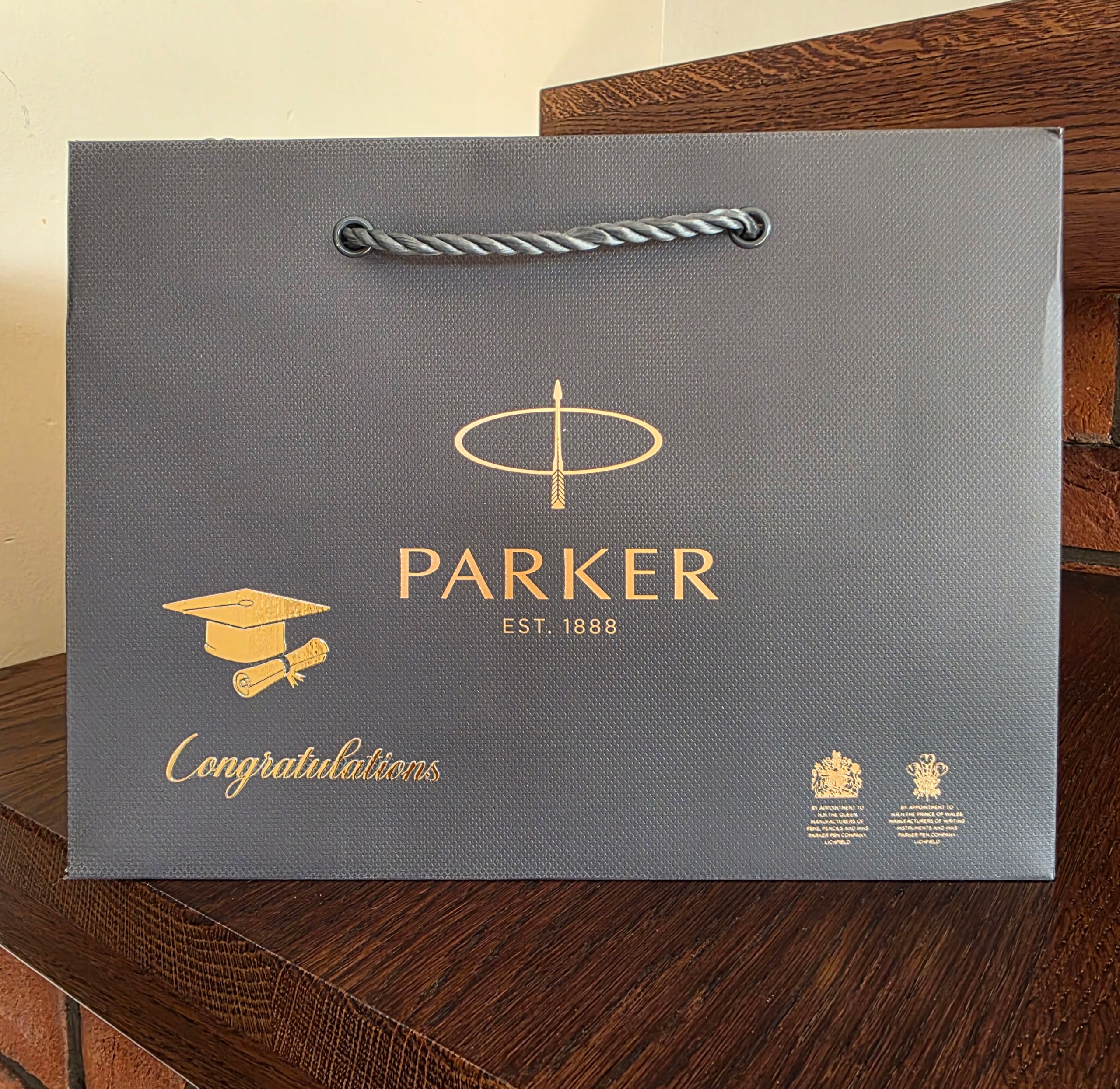 И вы дадите ручку и поздравительную открытку в красивой сумке Parker Company, которую вы получите от нас вместе с заказом.
