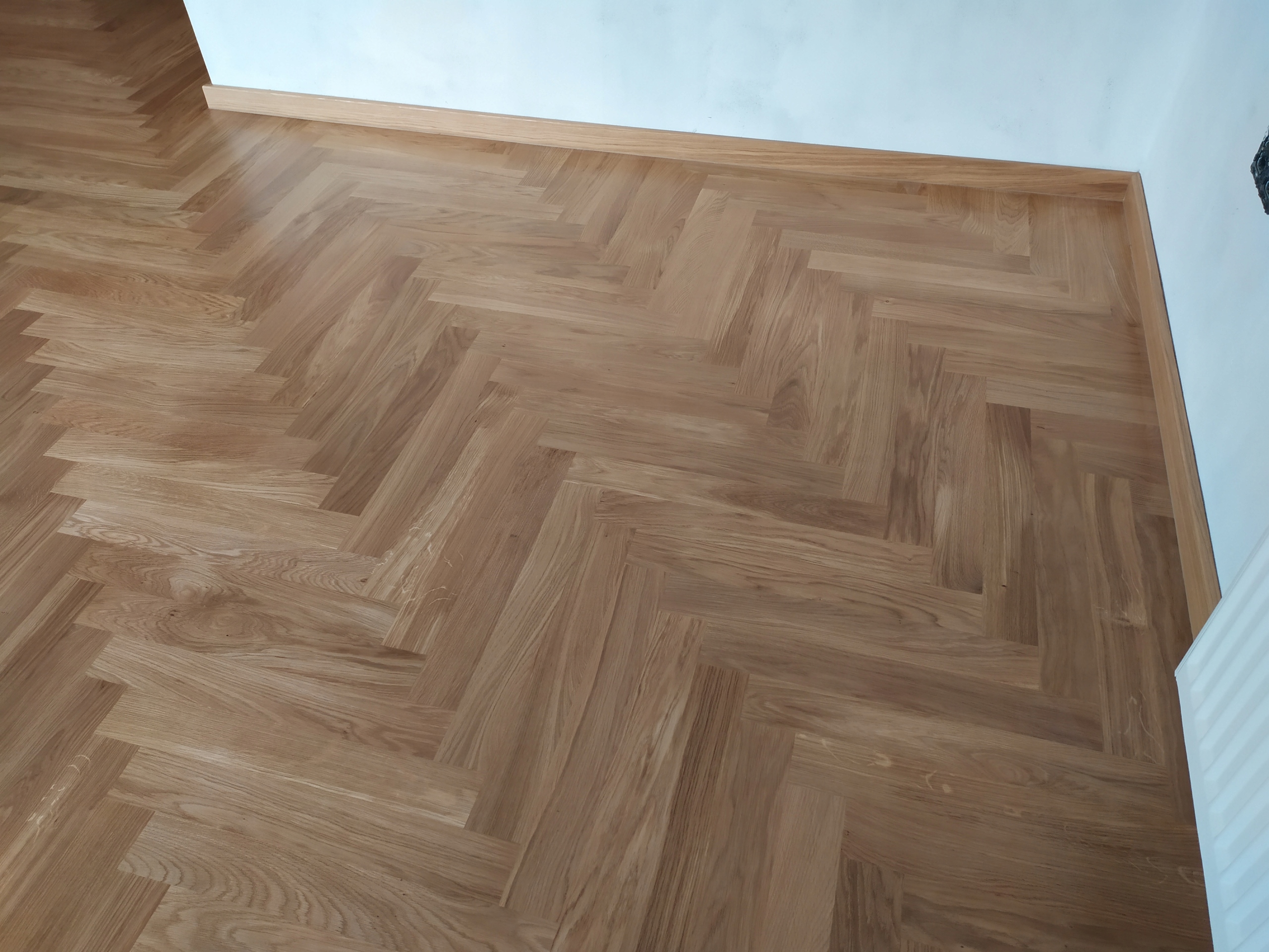 Дубовый паркет в классическом еловом узоре шириной 9 см придает полу неподвластный времени вид, который хорошо смотрится в традиционном и современном интерьере.