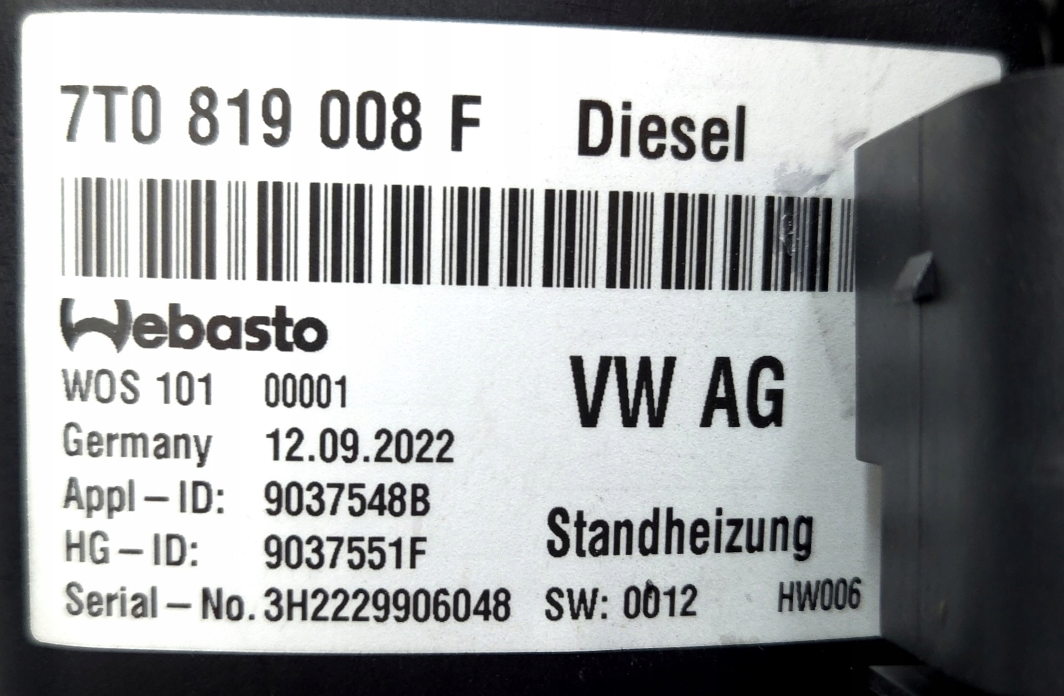 Piecyk Parking Heating Webasto Diesel VW T5 T6 7T0819008F