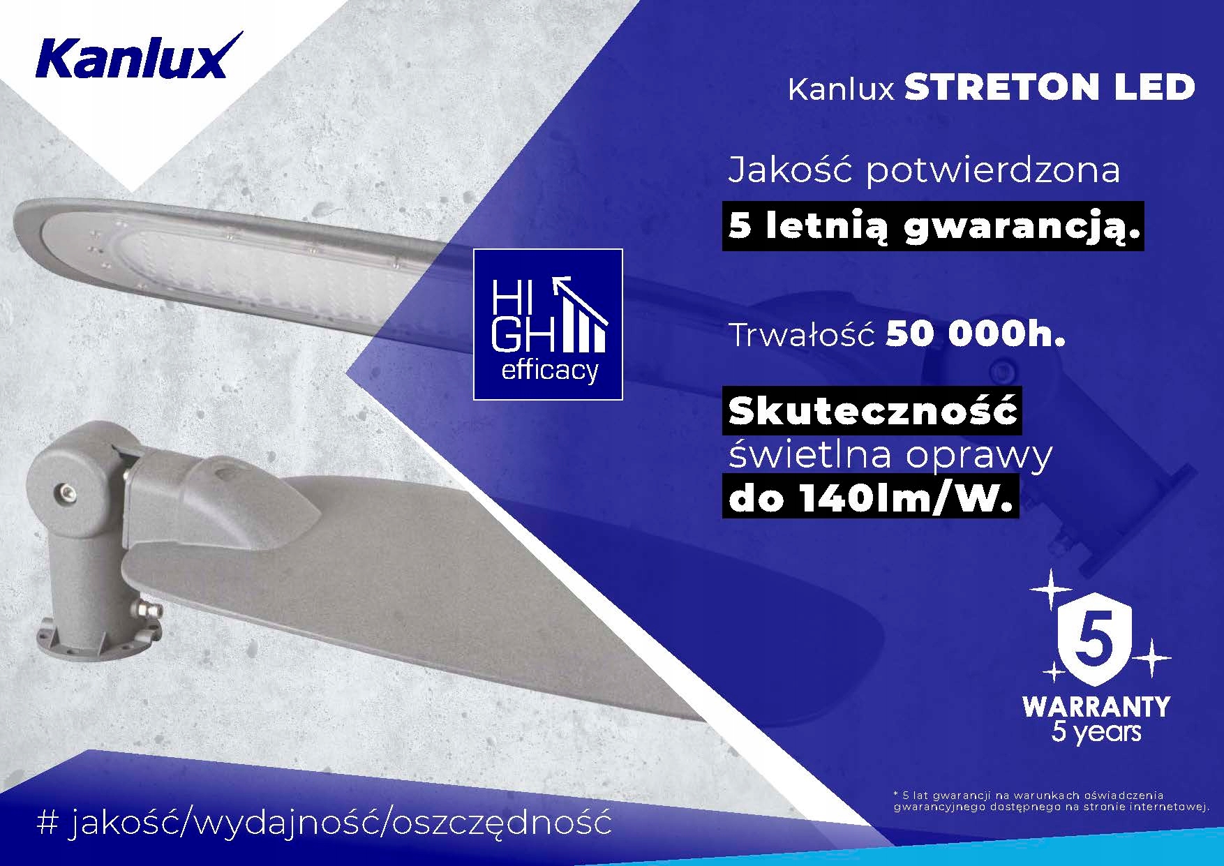 Kanlux STRETON LED — это уличные светильники, предназначенные для освещения парковок или больших площадей, которые должны быть освещены. хорошо освещен даже после наступления темноты. Их долговечность (50 000 часов), герметичность (IP65) и высокая мощность (до 200 Вт) делают Kanlux STRETON LED идеальным дополнением инвестиций в городское пространство, парковки, спортивные сооружения или скверы.