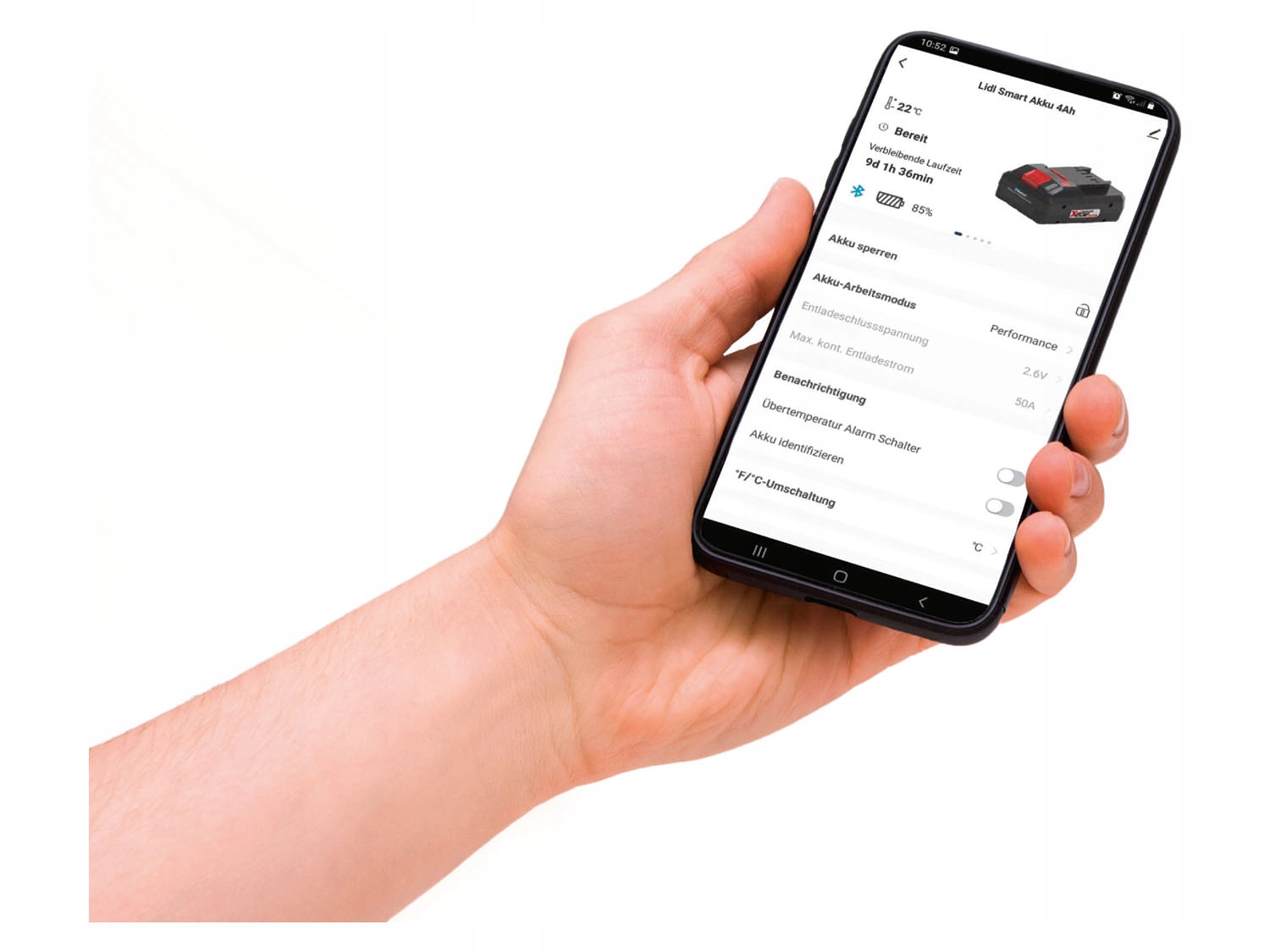 - считывание данных батареи и настройка параметров производительности через Bluetooth® и приложение PARKSIDE