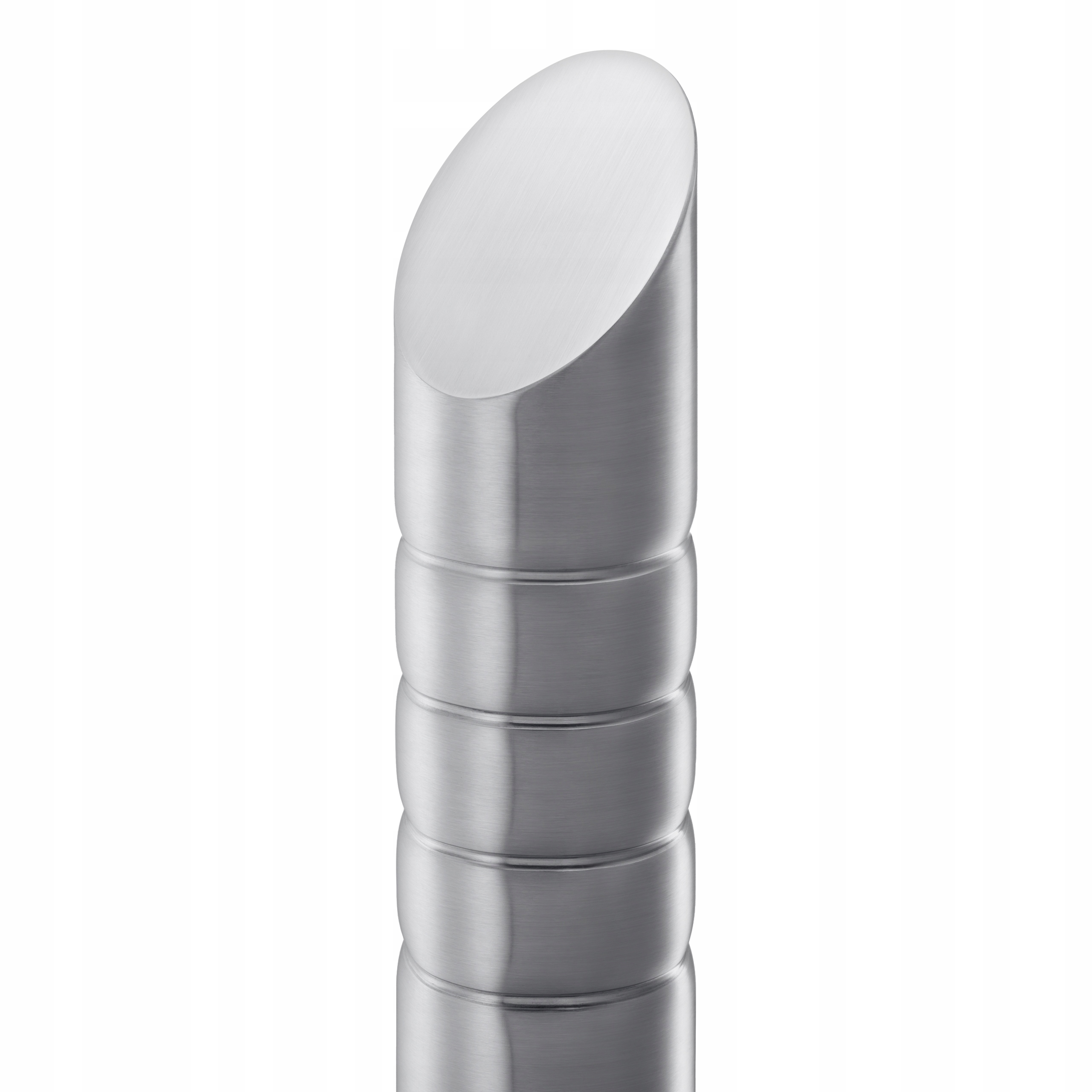 Столб Уран является эквивалентом поста Сатурн и предназначен для клиентов, которым нужна такая конструкция, но предназначен для постоянного подключения к земле. Для столбика характерен современный подход к проектированию городских столбиков. Его отличает обтекаемая форма без острых концов. Тонкое тиснение четырех колец в верхней части столбика делает его легким по сравнению с весом. Стойка изготовлена из нержавеющей стали INOX. Простой дизайн и эстетика делают его идеальным для разделения любого городского пространства. Столб снабжен отверстием в основании для поперечной установки стержня путем заливки его в бетон. Столб изготавливается в трех вариантах высоты. 600 мм, 800 мм и 1000 мм. Это позволяет подобрать подходящую высоту для места установки столба. Характеризуется высокой прочностью. Для повышения видимости в ночное время можно использовать дополнительную светоотражающую пленку. Столбы имеют атласную структуру.
