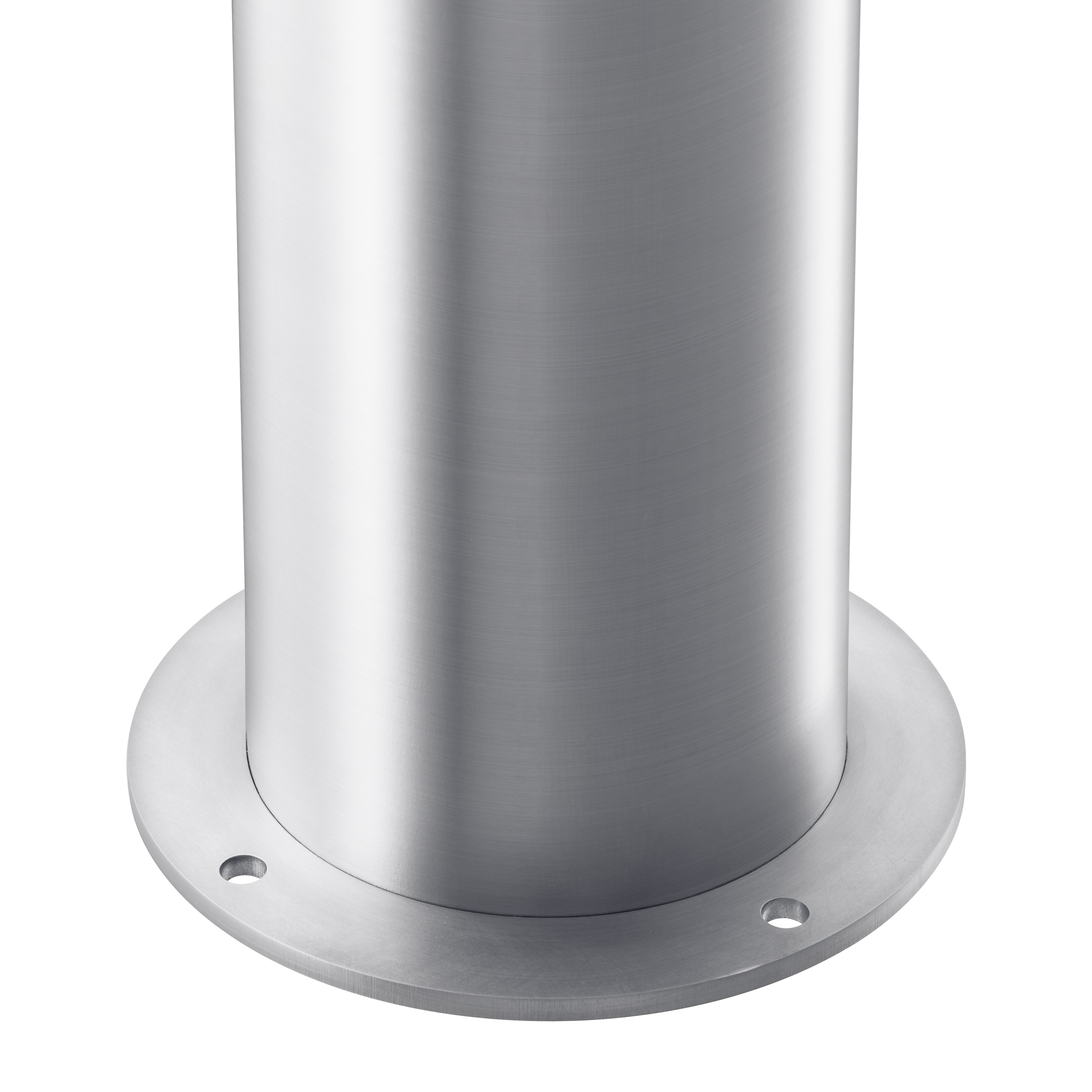 Польский производитель. Столб Нептун из нержавеющей стали INOX. Характеризуется современным дизайном со скошенным верхом. Стойка изготовлена из нержавеющей стали INOX. Ажурное тиснение четырех колец в верхней части столба делает его форму украшением городского пространства. Стойка в основании оснащена буртиком, позволяющим привинтить ее к земле в соответствии с инструкцией по монтажу. После сборки все сборочные элементы закрываются маскирующим кольцом, закрывающим всю форму. Столб изготавливается в трех вариантах высоты. 600 мм, 800 мм и 1000 мм. Это позволяет подобрать подходящую высоту для места установки столба. Характеризуется высокой прочностью. Для повышения видимости в ночное время можно использовать дополнительную светоотражающую пленку. Столбы имеют атласную структуру.