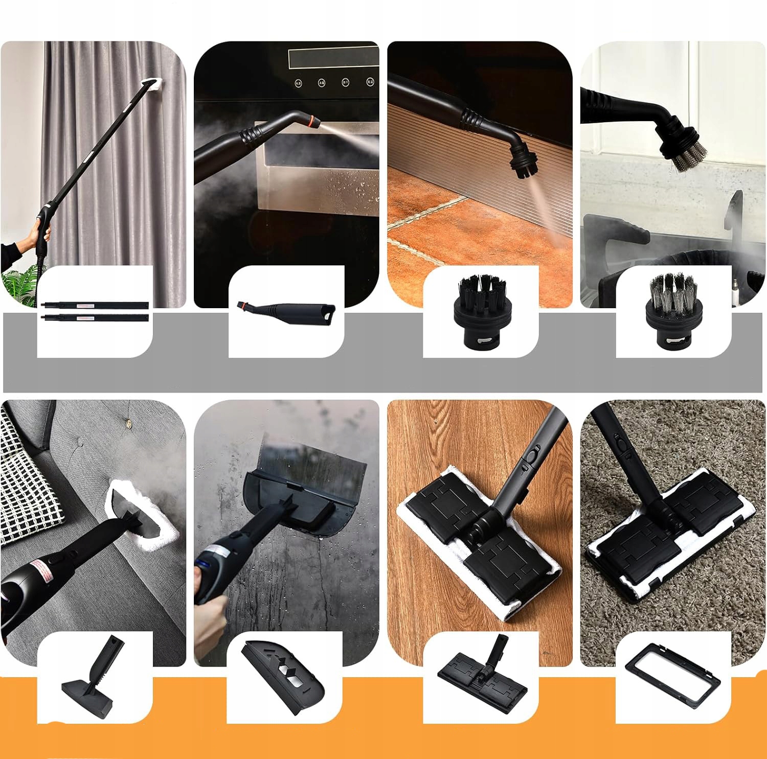 ➡️ В комплект входят 19 универсальных аксессуаров: В комплект отпаривателя входит 19 различных аксессуаров, таких как перчатки, мерные стаканчики, два удлинителя, гладильная щетка и щетка для стекла, для выполнения работ по уборке с различными требованиями.