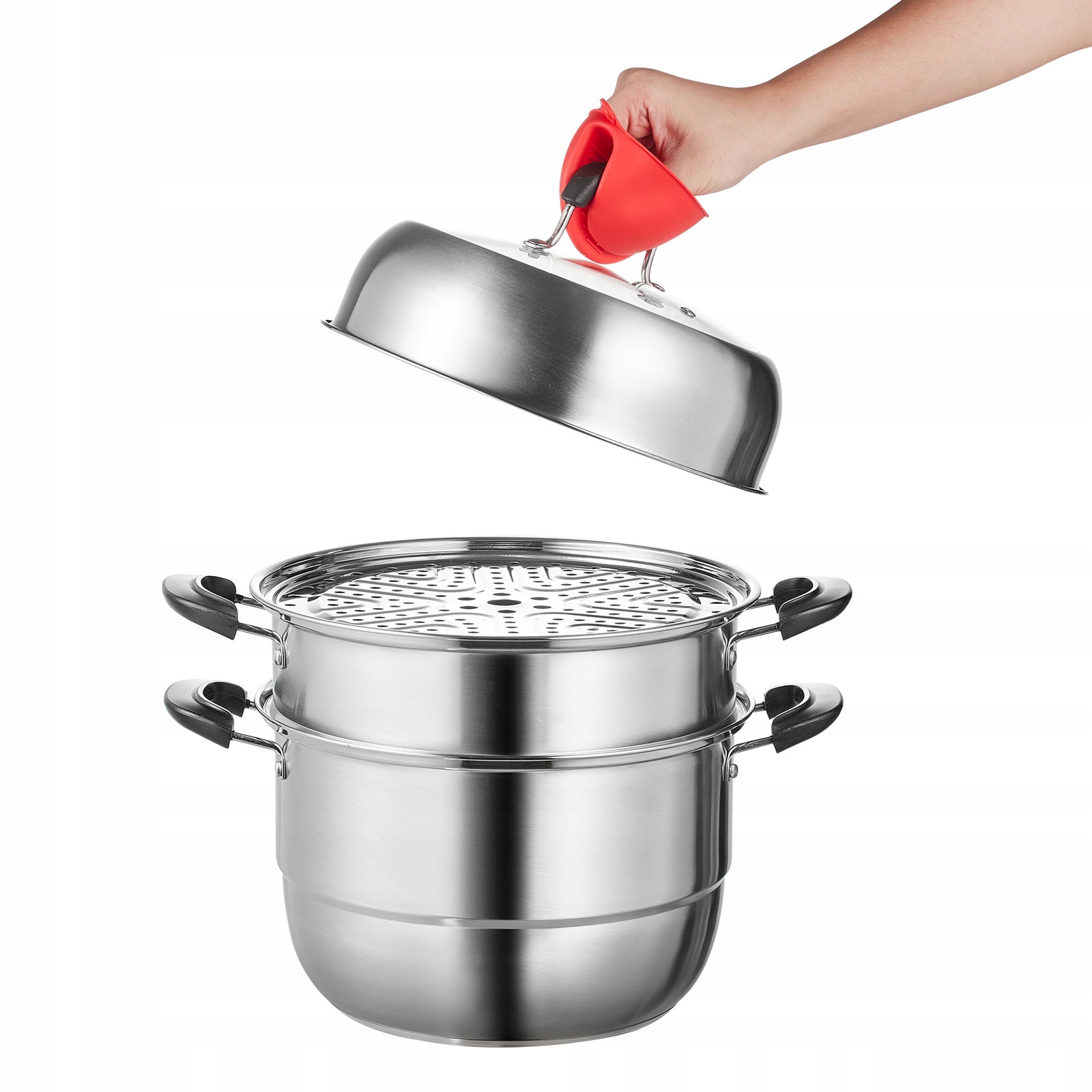 Сделано для вашего удобства: Улучшено с вдумчивыми деталями для эффективной приготовления паров. Вентилируемая закаленная крышка позволяет легко контролировать пищу без необходимости постоянного наблюдения. И внешняя конструкция обода горшка предотвращает сбежать пар, концентрируя тепло внутри. Кроме того, у нас есть прикрепленные перчатки, обеспечивающие безопасную и удобную пищевую работу.