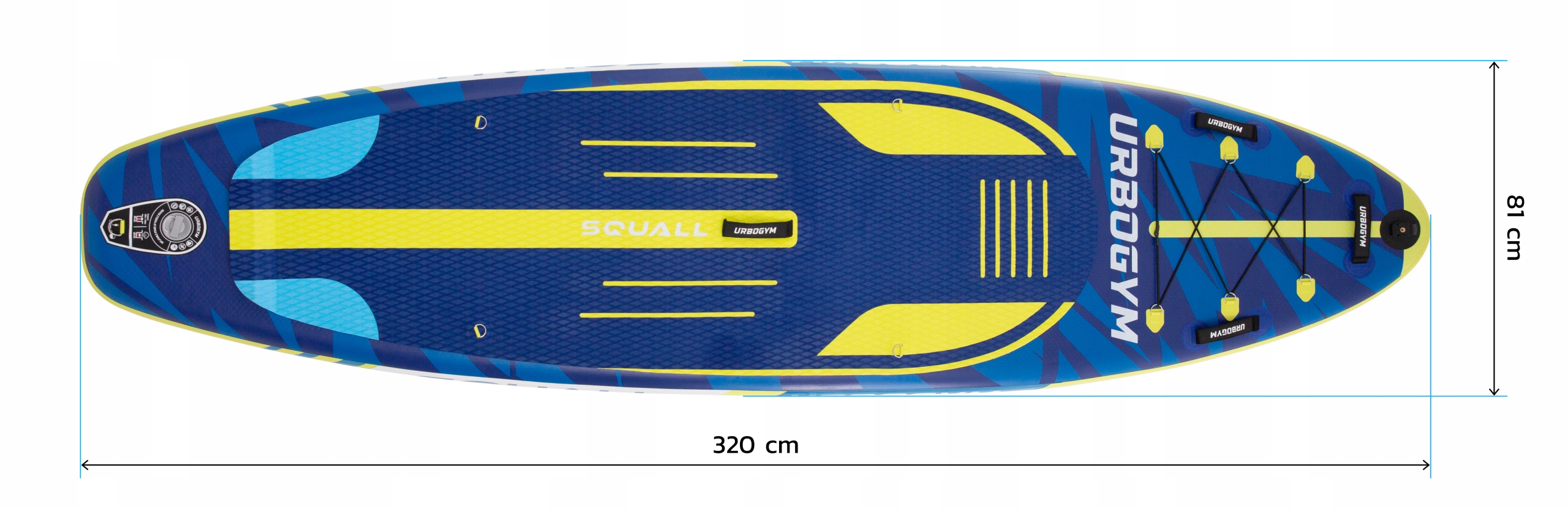 Доска SUP используется для занятий спортом, предполагающих удержание положения стоя при плавании на доске и отталкивании длинным веслом, что позволяет управлять доской. Доска SQUALL 320 Urbogym — это универсальная доска, отличающаяся высокой универсальностью, идеальная для новичков, которые оценят невероятную устойчивость b> этот тип досок. Это прекрасная форма проведения свободного времени у воды, позволяющая заниматься интенсивными видами спорта, благодаря чему мы укрепляем организм и сжигаем калории и, прежде всего, проводим время на свежем воздухе. Будет отличной альтернативой для людей, увлекающихся виндсерфингом или серфингом. Благодаря ему вы легко сможете научиться балансировать на доске или удерживать равновесие – что станет отличной тренировкой для начинающих серферов, мечтающих об открытых водах.