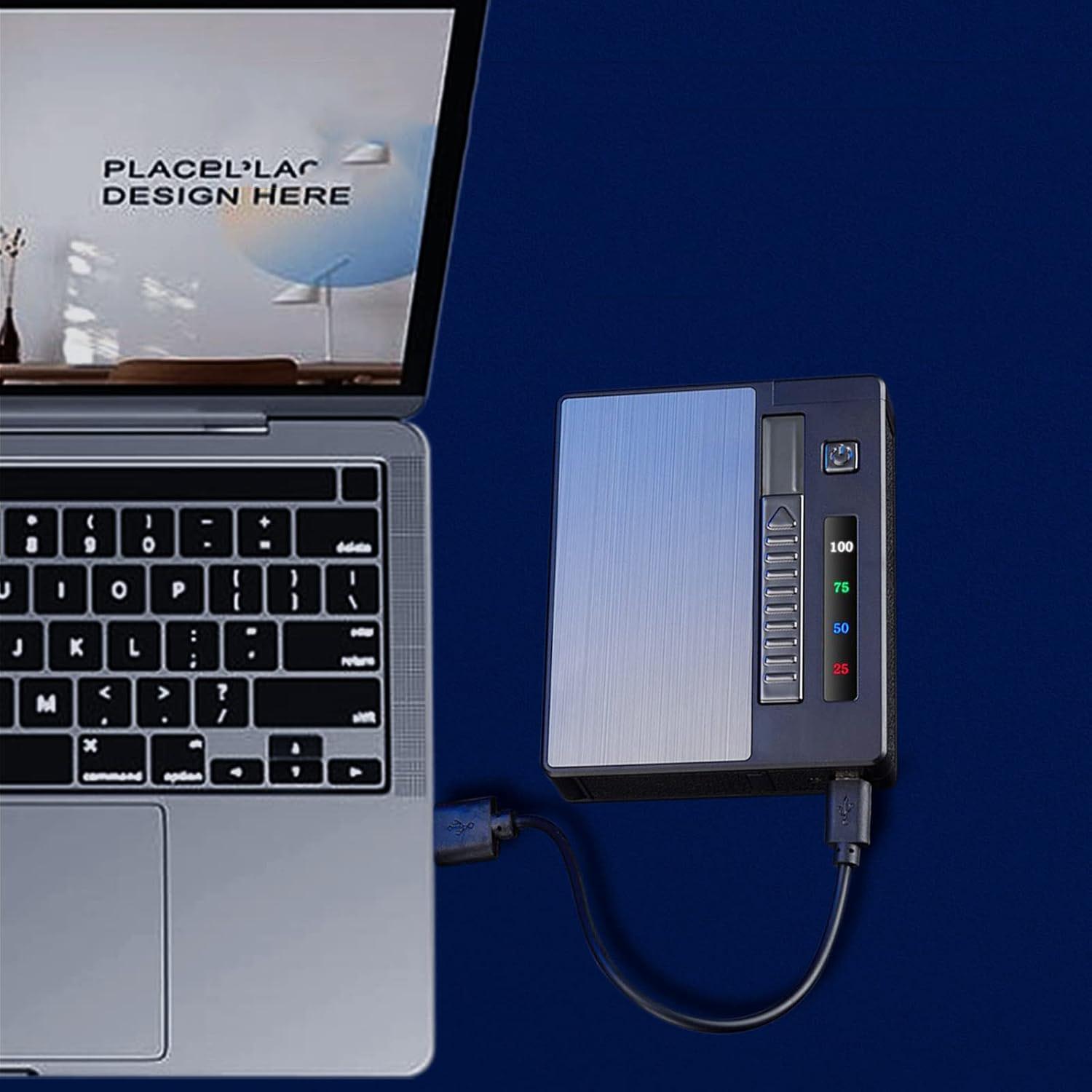 🚬【Зарядка через USB】Портсигар USB с зажигалкой. Этот электронный портсигар очень совместим, а портсигар с зажигалкой может заряжаться от ноутбуков, автомобилей, аккумуляторов и подставок.