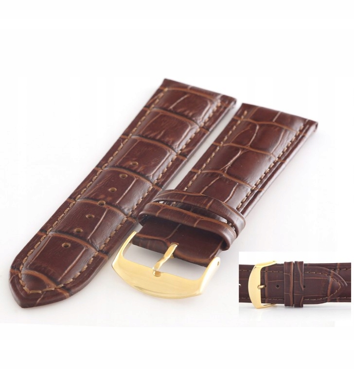 Ремешок для часов с коричневой строчкой из кожи аллигатора, ОЧЕНЬ ДЛИННЫЙ
