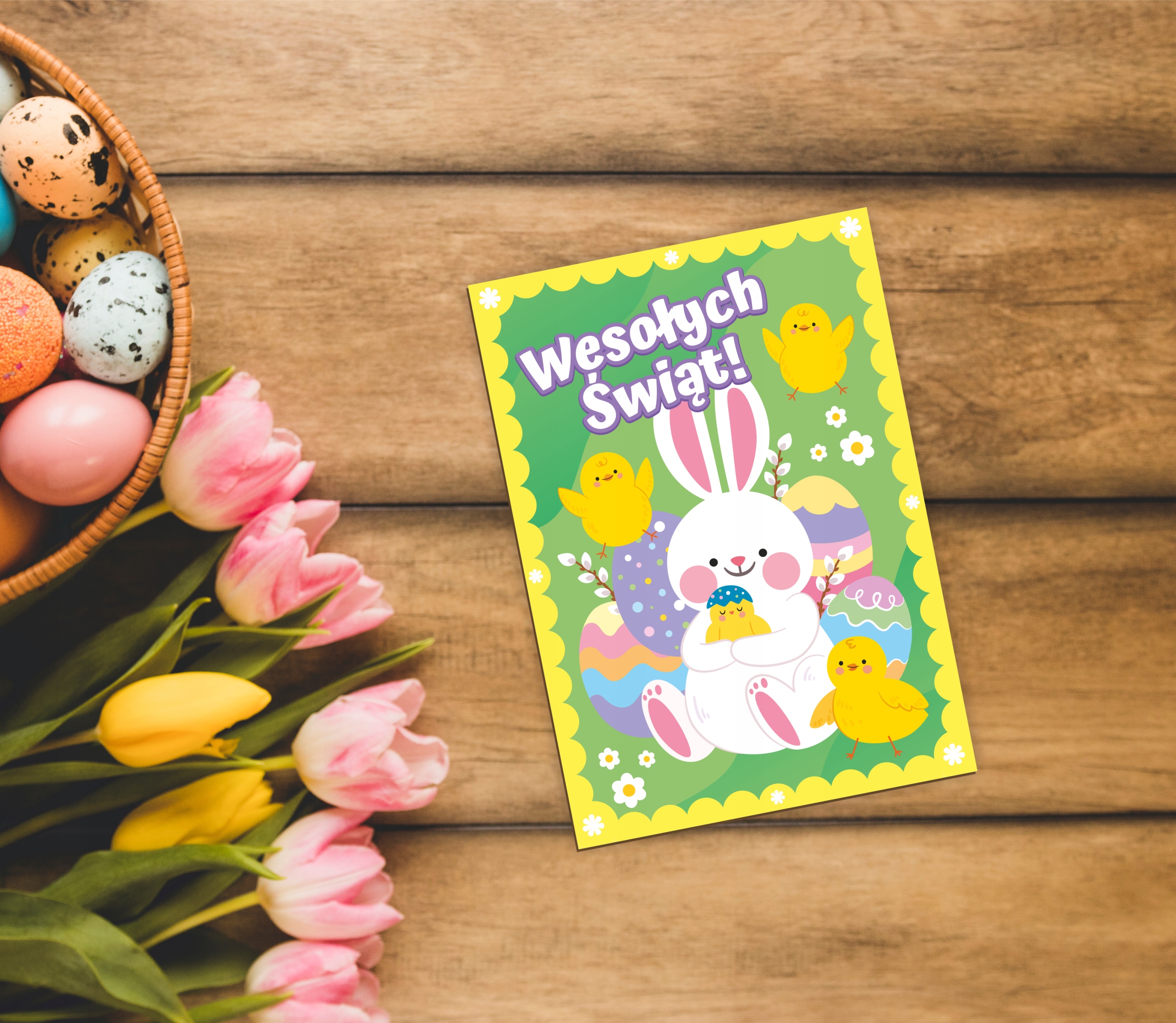 Красочная открытка с пасхальным мотивом станет прекрасным подарком по случаю Пасхи.